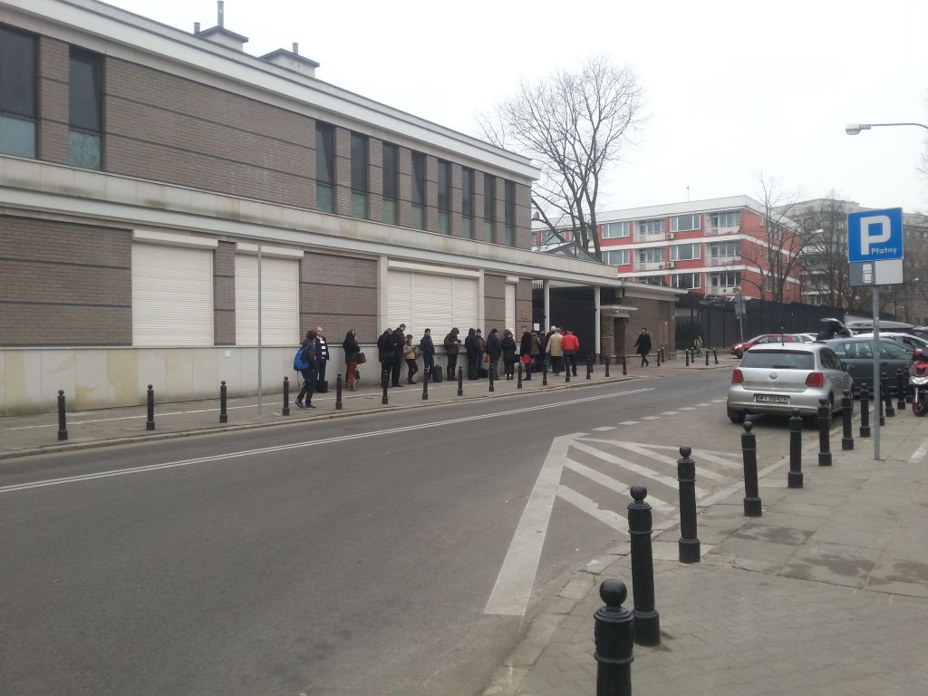 To, o czym strona ambasady (czy raczej jej odpowiednia sekcja) nie powiadamia, to obowiązek złożenia dodatkowo jednej kserokopii paszportu. Możecie ją zrobić na miejscu, za co pan obsługujący mikre ksero zedrze z Was złotówkę od sztuki, ale lepiej nie stawiać na bezawaryjność maszyny w ambasadzie, zaoszczędzić 80 groszy oraz kilka minut czasu stania w kolejnej kolejce (bo i tak swoje odstoicie, o czym zaraz); i zrobić ksero we własnym zakresie.