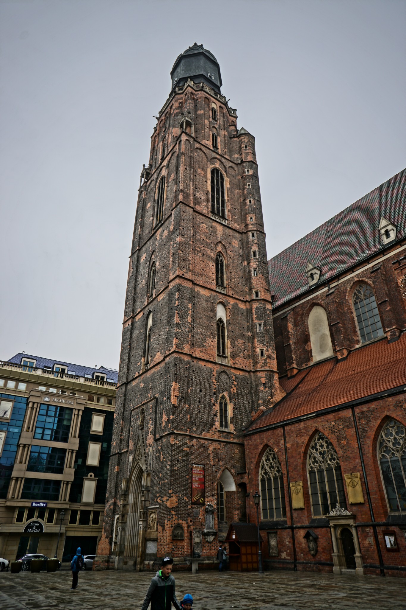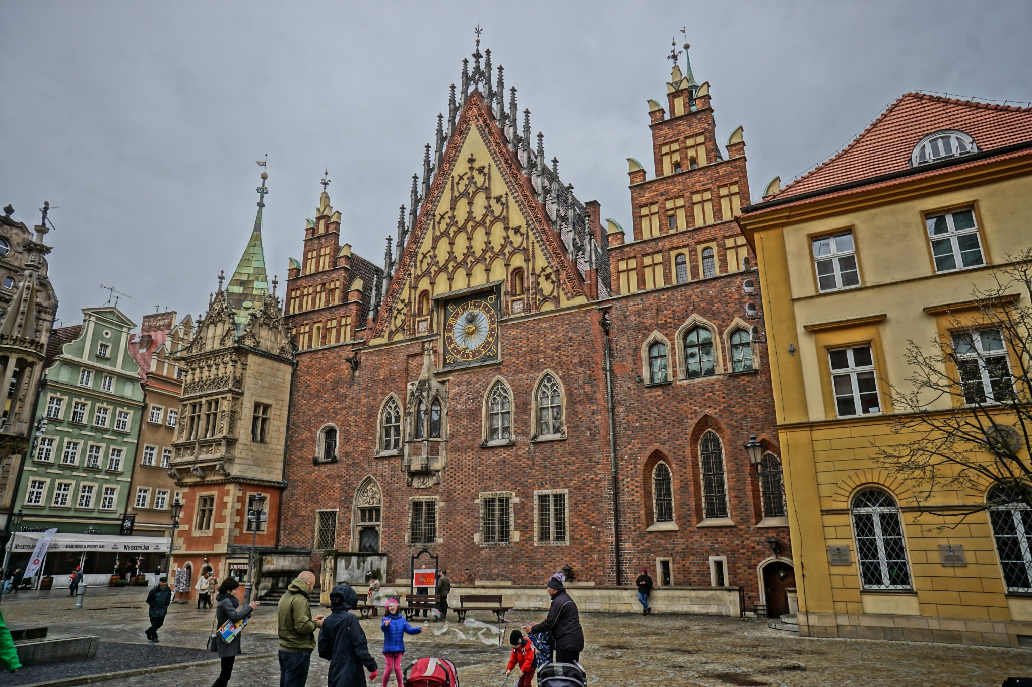 Na pierwszy ogień poszedł, rzecz jasna, Rynek wraz z imponującym ratuszem w stylu, który zasadniczo uwielbiam (bardzo lubię „czerwony” gotyk, z tymi wszystkimi łukami, krużgankami, wykuszami i innymi pierdoletami, przywodzącymi na myśl konstrukcje z klocków Lego, budowane przez stukniętego 5-latka). Chwilowa poprawa pogody pozwoliła zrobić mu kilka w miarę przyzwoitych zdjęć, a następnie przejść do analizy pobliskich kamienic, zakończonych zlokalizowaniem sławnego, namalowanego okna pod adresem Rynek 5.