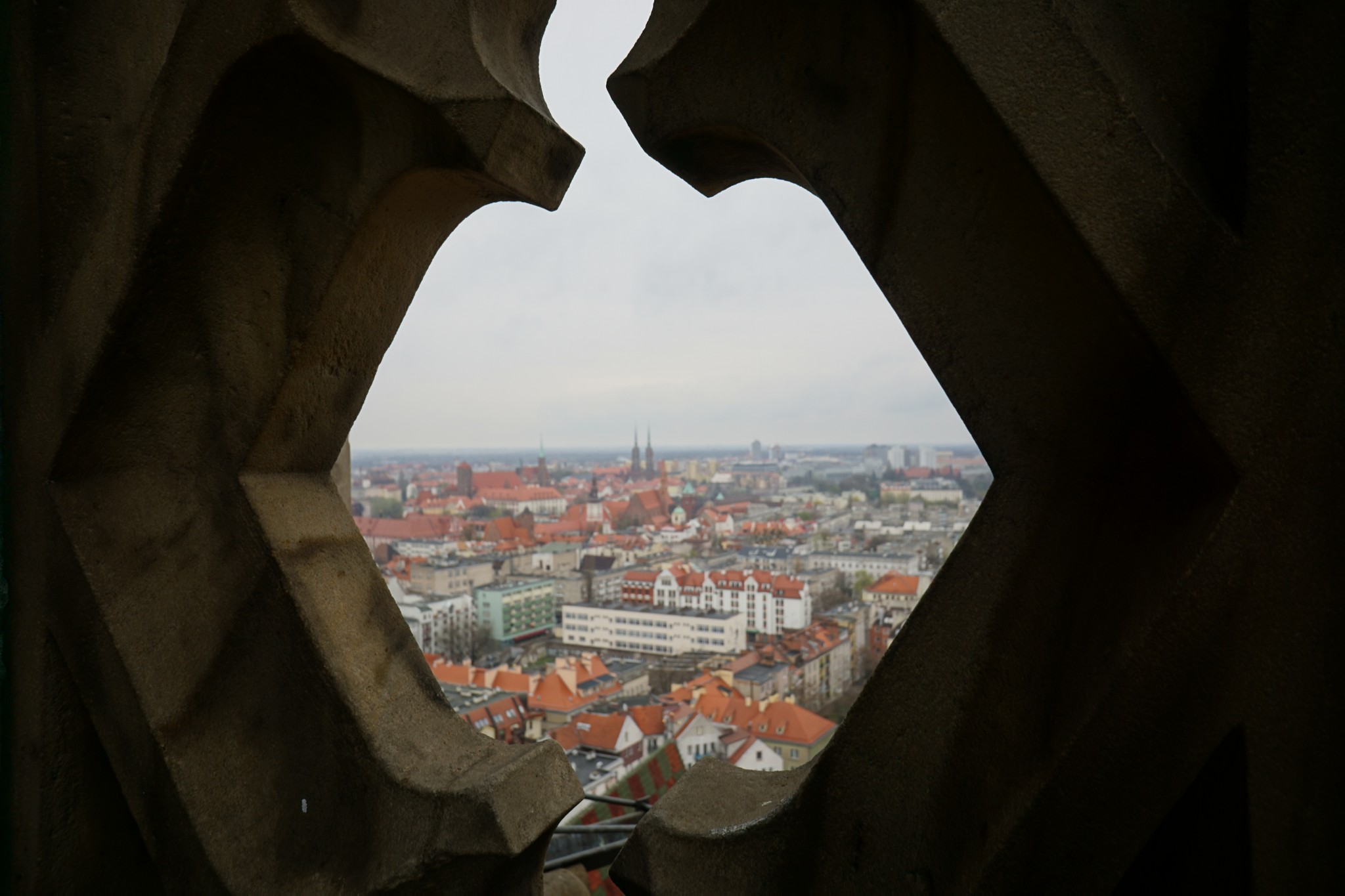 Wejście na wieżę kościoła św. Elżbiety zakończyło się sukcesem w 75%, bo jedno z nas zastrajkowało i położyło lachę na prawie 90-metrowej wspinaczce. Widoki z wieży rekompensują jednak ewentualną zadyszkę, nawet jeśli na samej górze wieje jak sam skurwysyn.