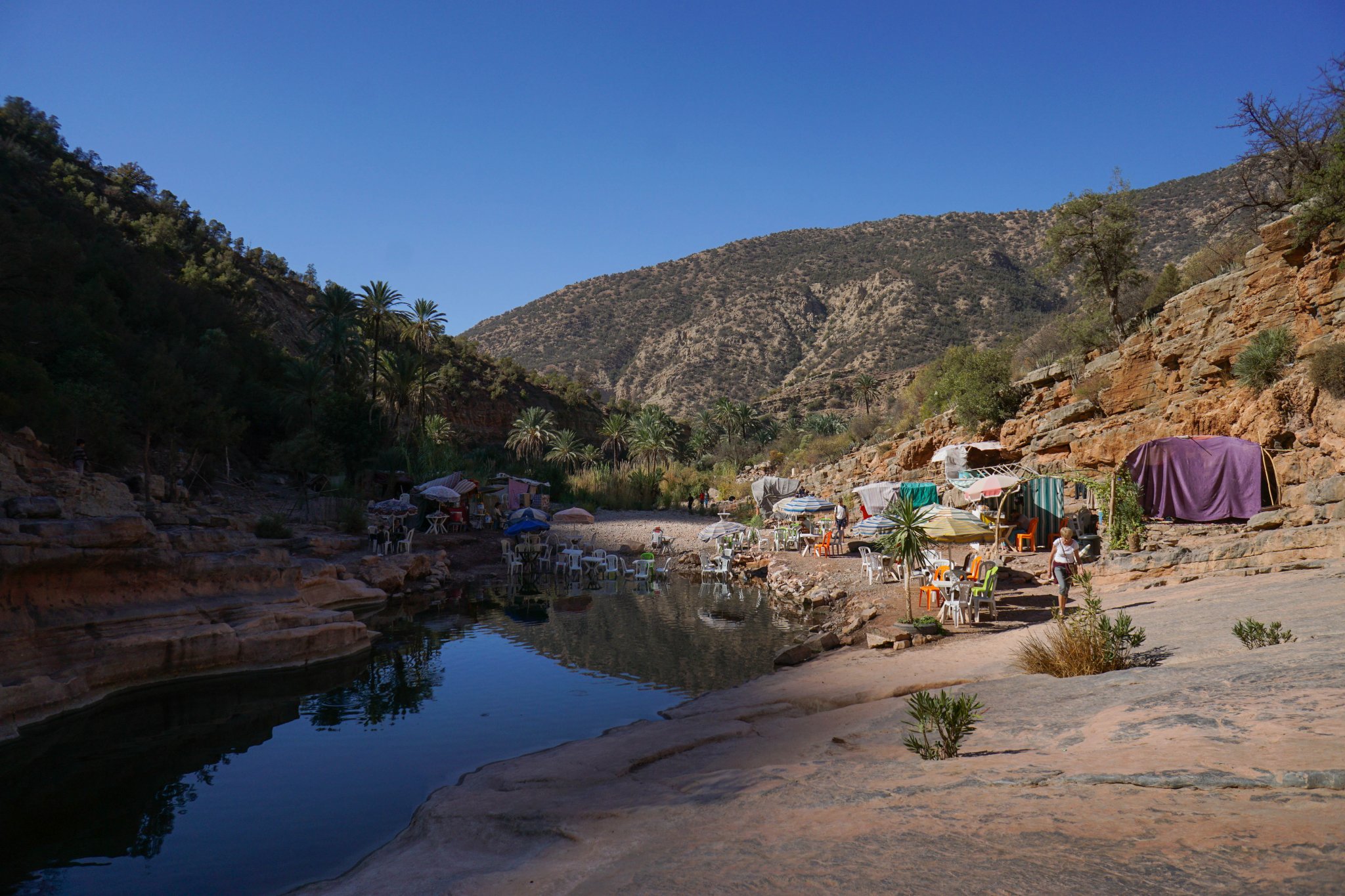 Tym większe może być Wasze rozczarowanie kiedy już dojedziecie do samej Paradise Valley. Rajska Dolina nie urywa dupy, a dodatkowo jest już przekształcona w mocno turystyczną miejscówkę. Restauracyjni zaganiacze nie dają żyć, a „finałowe” jeziorko zobaczycie dopiero po tym, jak przeskoczycie kilka hałd śmieci. Polecam tylko tym, którzy do Agadiru przylecieli na weekend – wszyscy inni, planujący wycieczkę w głąb kraju – mogą sobie Rajską Dolinę spokojnie odpuścić. Na wschodzie naprawdę zobaczycie ciekawsze rzeczy.
