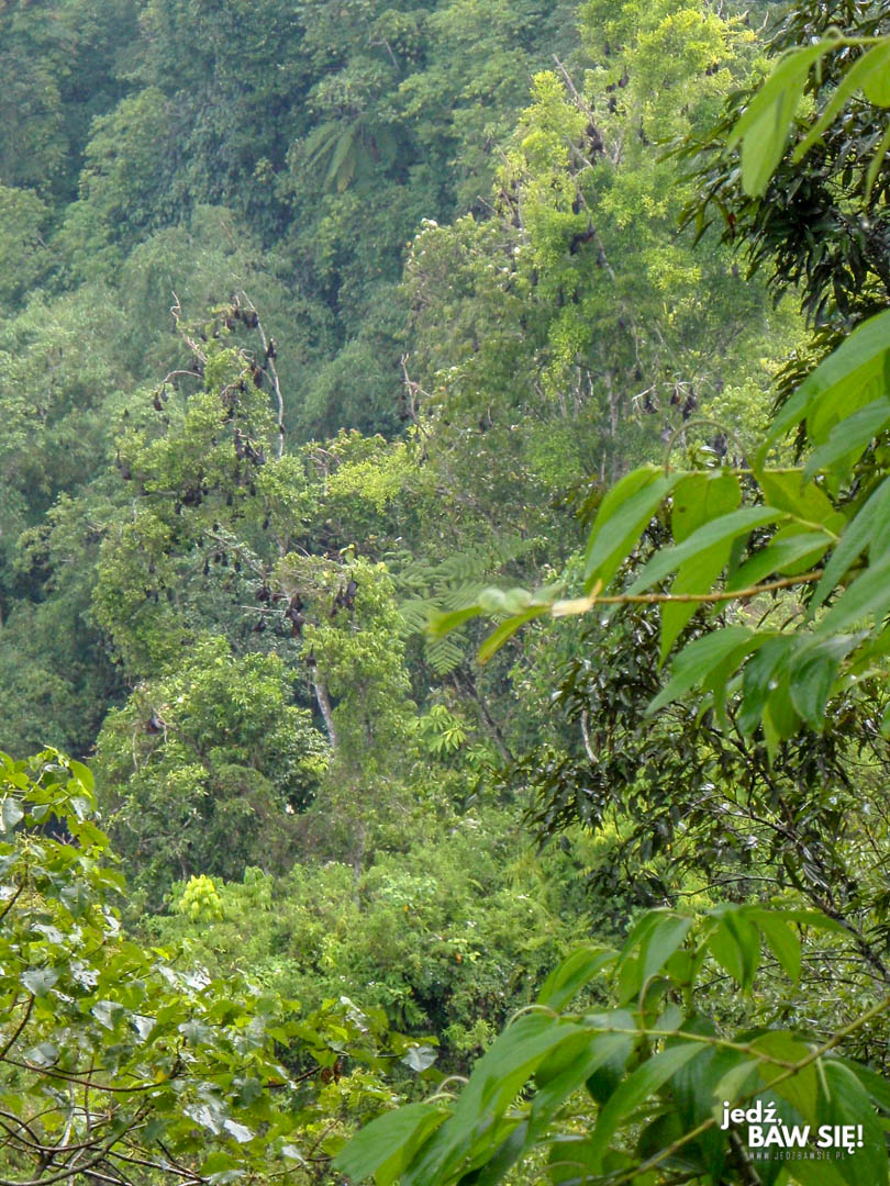Ponadto, jeśli będziecie mieli szczęście, to jakiś przyjazny locals może podpowiedzieć Wam, gdzie znaleźć dzienne siedliska wspomnianych wcześniej nietoperzy owocożernych. Nam udało się namierzyć jedno na południe od Bukkitingi, gdzieś po drodze do wioski Koto Gadang (tej od srebra), którą odwiedziliśmy we własnym zakresie. Obwieszone nietoperzami drzewo zrobiło na nas duże wrażenie, chociaż zwierzaki pozostały niewzruszone wobec generowanego przez nas specjalnie hałasu.