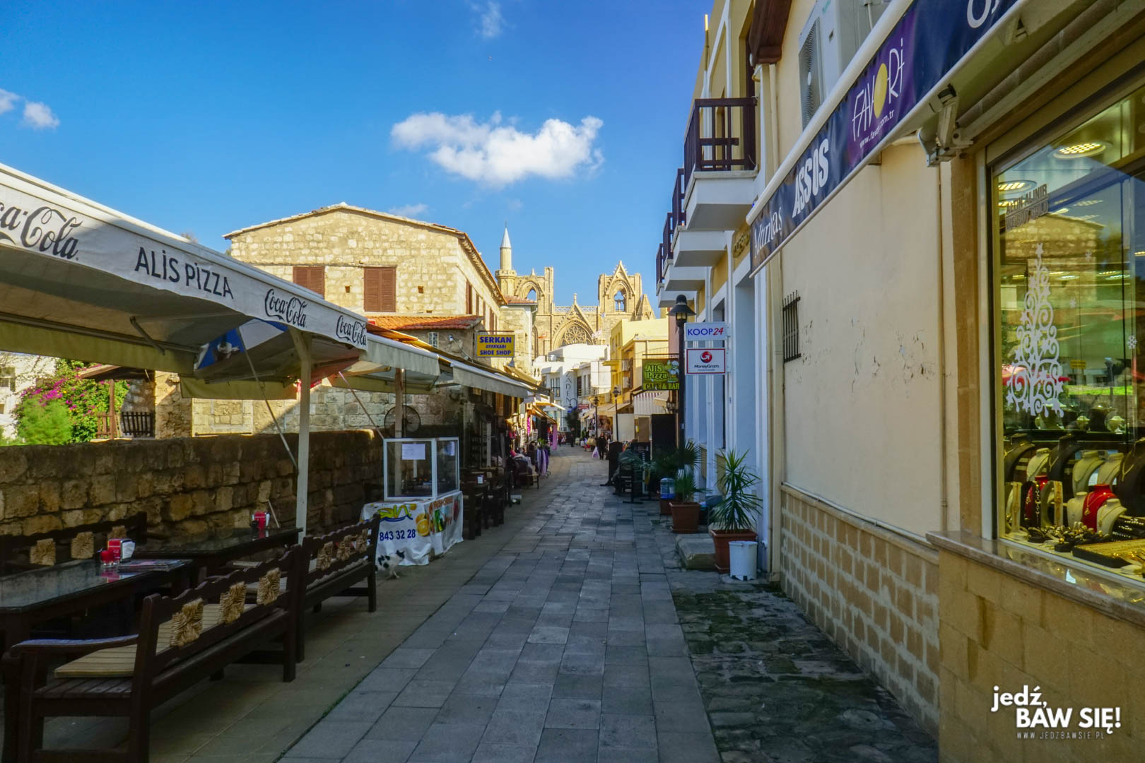 Dzień przed naszą wizytą w Famaguście, przypadkiem dowiedzieliśmy się od jednego z pracujących na Cyprze, polskich przewodników, że miasto jest NIEBEZPIECZNE. No cóż – jeśli ktoś wybiera się o 3:00 w nocy na zwiedzanie jakichś skrajnie położonych ruin, to może rzeczywiście tak jest. My po dojechaniu na miejscu zastaliśmy szałową, ale nieco senną starówkę, kuszącą turystów kilkoma barami i zachęcającymi uśmiechami kelnerów, którzy okazali się być jednymi z najmniej napastliwych na całej wyspie.