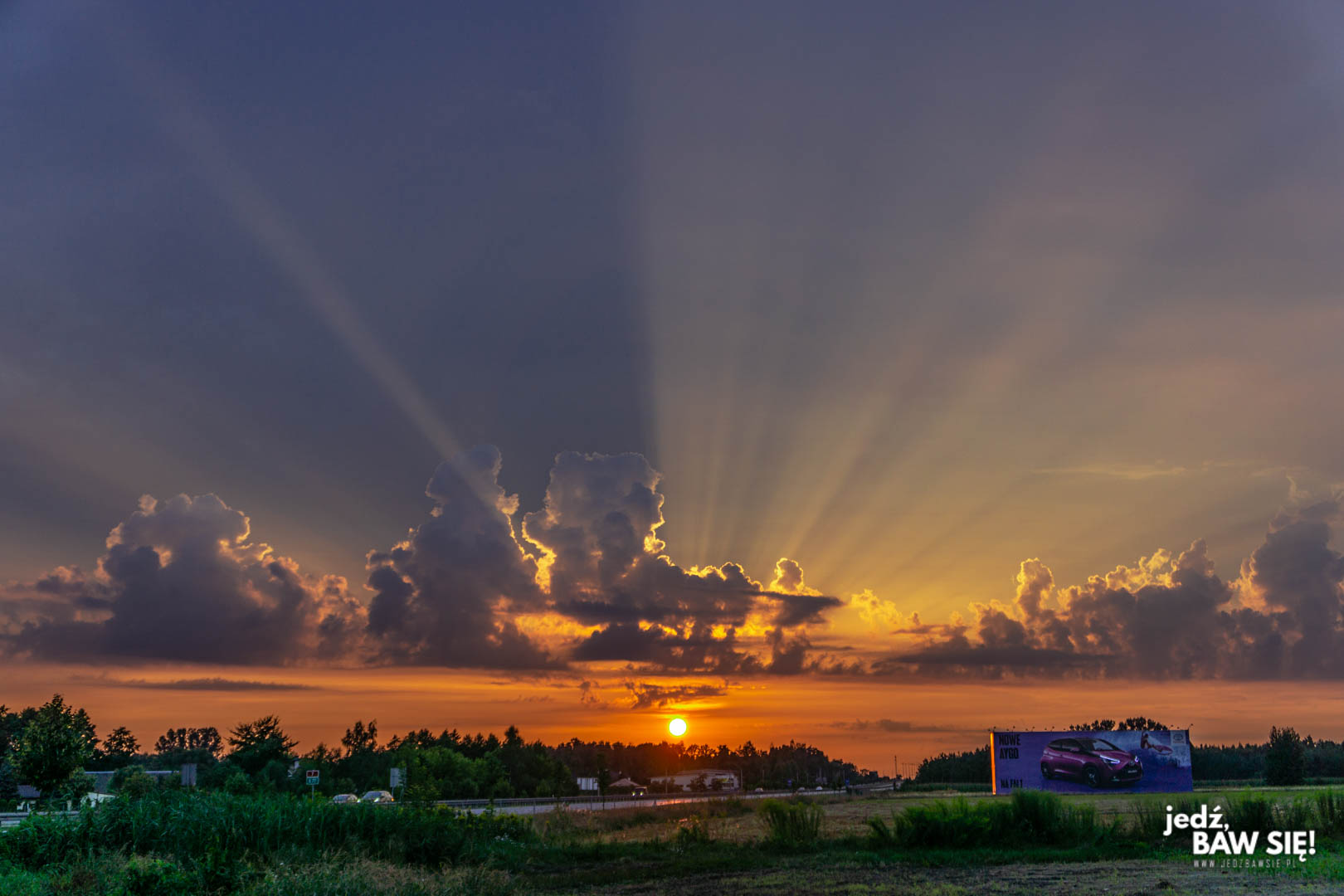 Krzyżtopór zamknął naszą wizytę w Świętokrzyskim. Pogoda nie sprzyjała, ale może to i dobrze – w drodze powrotnej do Warszawy złapały nas gigantyczne korki, więc i tak byliśmy w domu znacznie później, niż się spodziewaliśmy. Na pocieczenie został nam przepiękny zachód słońca, złapany – nieco prześmiewczo – podczas postoju na sikanie na mijanej stacji benzynowej.