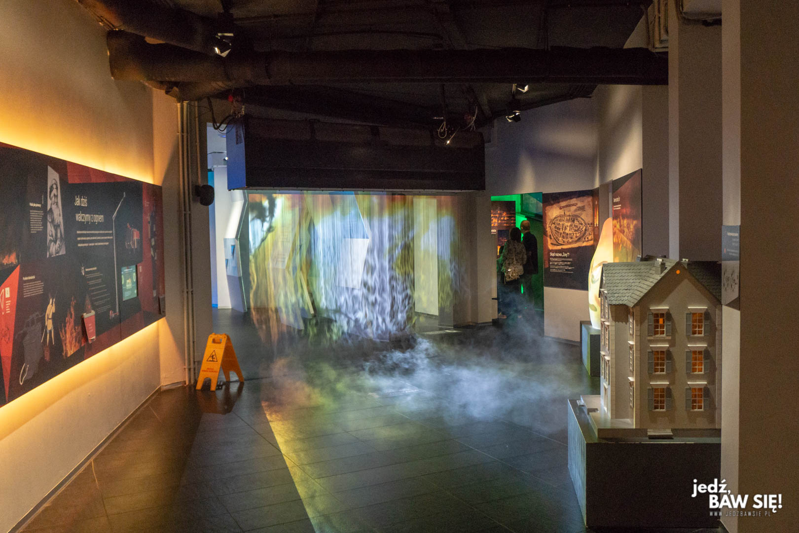- Pali się to… err… podobno największa atrakcja placówki. Dobrze, że wiedziałem o tym wcześniej, bo inaczej prawdopodobnie zwróciłbym na nią tylko szczątkową uwagę. Wspomniana ściana ognia jest bowiem generatorem dymu z rzuconą na ów dym projekcją pełgających płomieni. Wygląda to fajnie, ale powalającą instalacją bym tego nie nazwał. Zaraz za nią znajduje się natomiast…