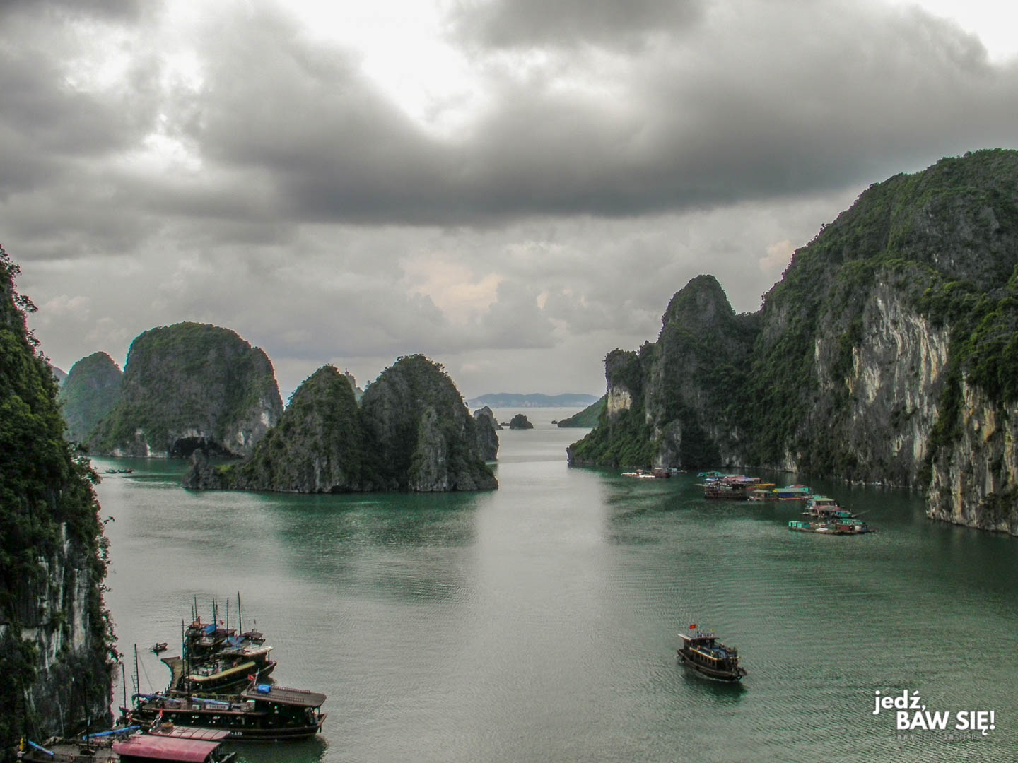 Każda noclegownia w Cat Ba w ciągu kilku minut zorganizuje Wam przynajmniej jednodniowy wypad do zatoki Ha Long. My, o ile mnie pamięć nie myli, dogadaliśmy się z jedną z firm turystycznych sąsiadujących z naszym hotelikiem, a jednodniowy rejs wyciągnął nam z kieszeni 17$/osoby. Dziś będzie to zapewne więcej, aczkolwiek i tak zaznaczę, że – z racji na nasz status majątkowy – niska cena odgrywała w naszym przypadku dość znaczną rolę. Oczywiście, na pływającą wycieczkę po Halong można wydać praktycznie nieskończoną kwotę – możecie na przykład wyprawić się na nią chińską dżonką albo luksusowym statkiem, na którym co godzinę będą Wam serwować owoce morza oraz drinki wliczone w cenę. Nasz wariant był zdecydowanie mniej wypasiony, aczkolwiek wciąć zawierał posiłek, który zresztą okazał się całkiem niezły.