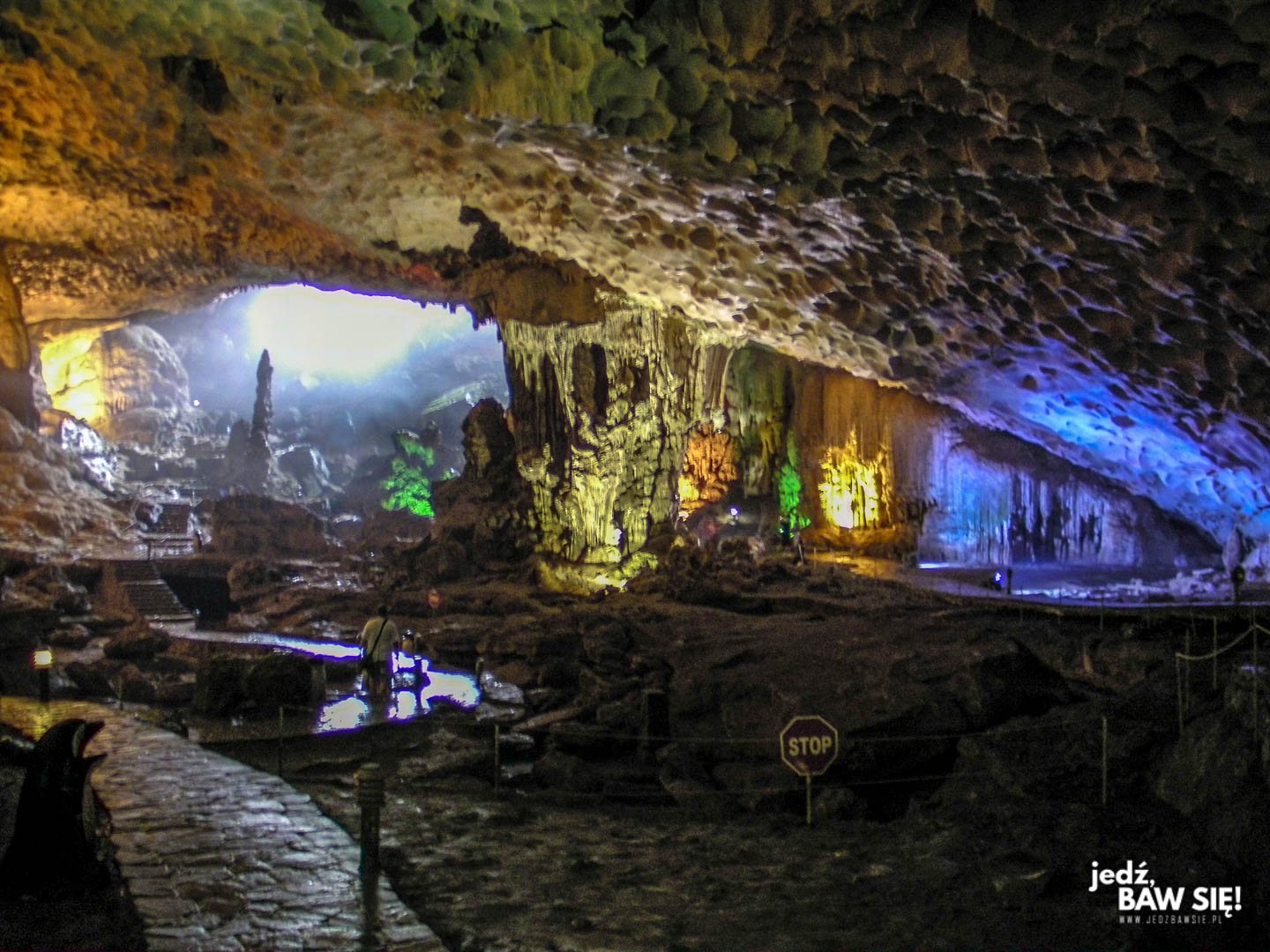 Po snorklingu przyszła pora na kolejny etap transportowy, podczas którego opędzlowaliśmy lancz. Zaraz po nim statek dopłynął do jednej z tutejszych jaskiń – zabijcie mnie, jeśli wiem, do której dokładnie. Stawiam na Hang Trong.