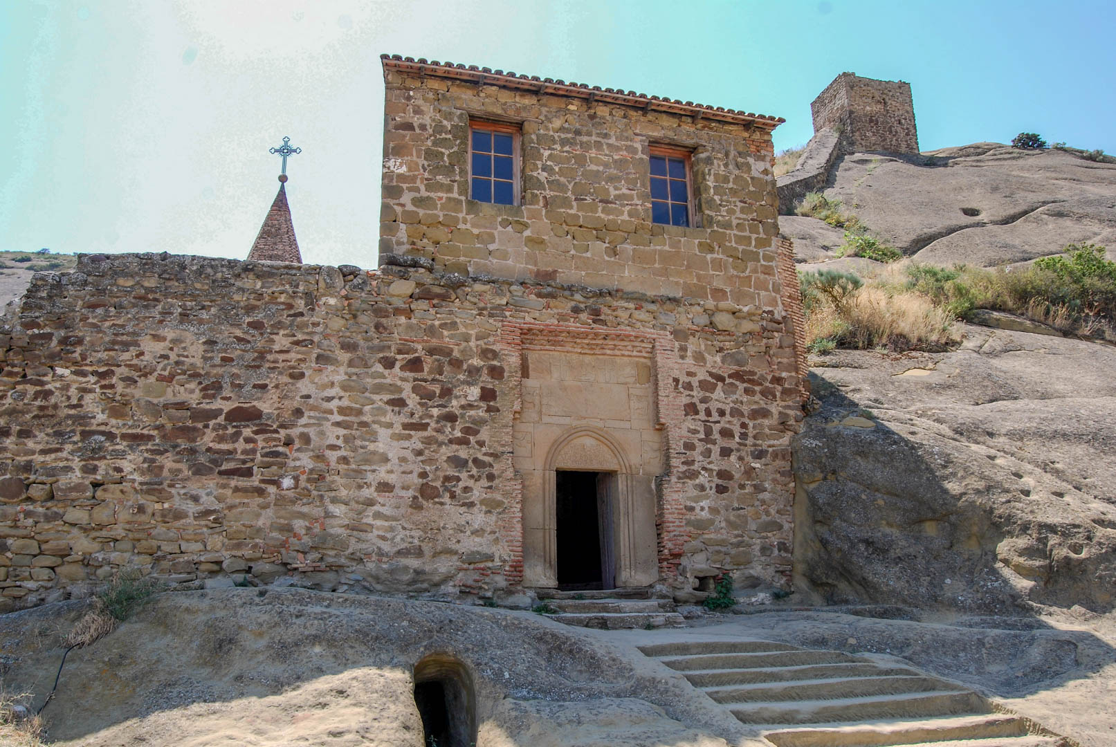 Bo wyjściu z Lavry możemy udać się jeszcze na teren drugiego największego klasztoru kompleksu – Udabno (nie mylić z idylliczną, położoną nieopodal wioską, o której możecie przeczytać tutaj). Wystarczy podążyć ścieżką biegnącą nieopodal Lavry. Wstyd przyznać, ale – o ile moje zapiski mnie nie mylą – my częściowo przegapiliśmy tę atrakcję i poszliśmy niejako w drugą stronę, omijając (podobno spektakularne) widoki rozciągające się z górującego nad kompleksem wzgórza. Z niego możecie również, jeśli bardzo chcecie, napluć na terytorium Azerbejdżanu, do których z tego miejsca jest rzut beretem.