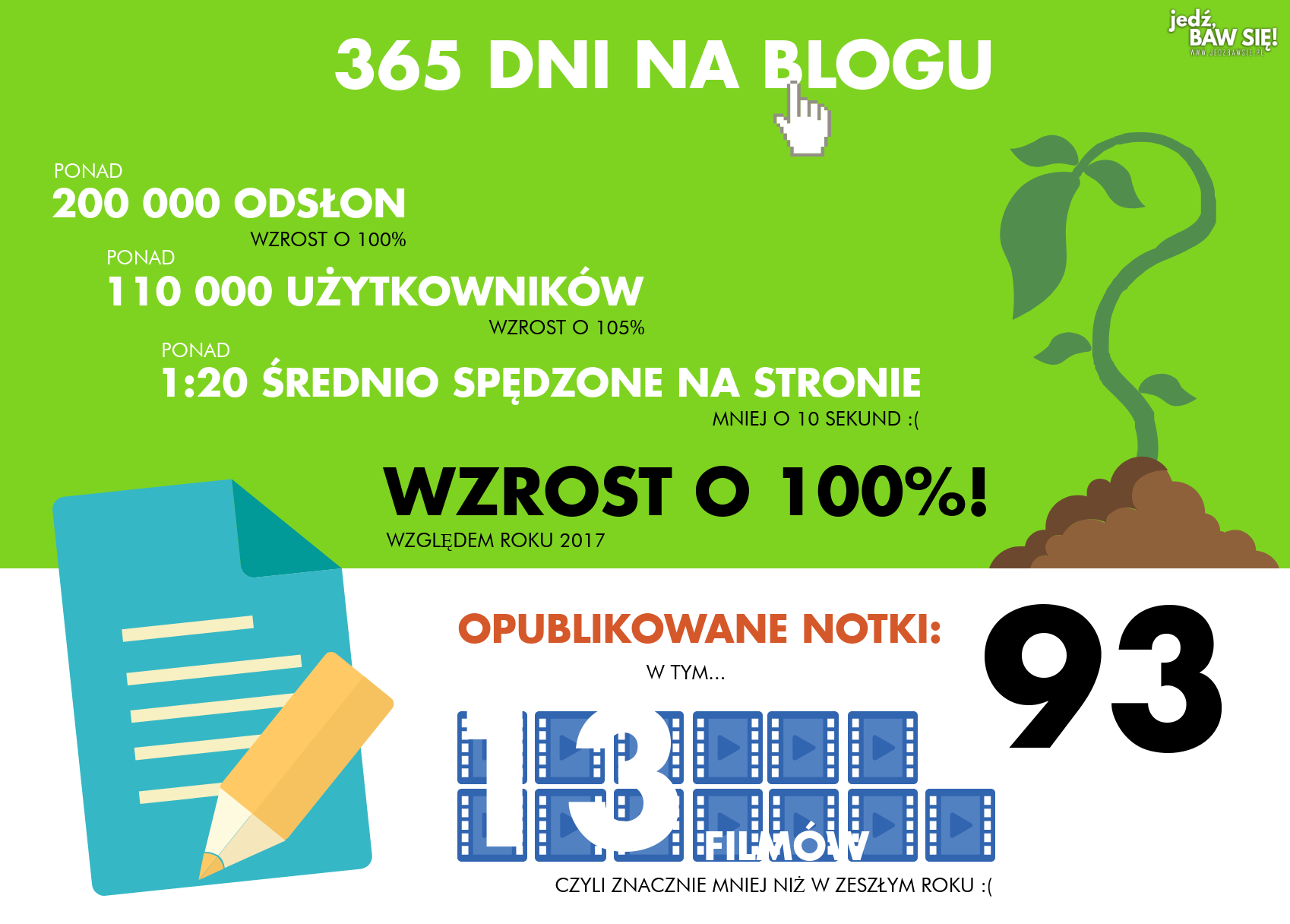 Pod kątem blogowym rok 2018 kończę z mieszanymi uczuciami. Z jednej strony, gorący okres wakacyjny ustabilizował średnią ilość unikalnych użytkowników bloga na poziomie około 10 000. Jest to niewątpliwy sukces, zwłaszcza zważywszy na to, że ta liczba rok wcześniej kształtowała się na poziomie około 3 000. Do takiego stanu rzeczy przyczyniły się między innymi relacje z Cypru i Maroka – kierunków dość popularnych przez większość roku, a do tego na tyle egzotycznych, by moje wpisy nie musiały konkurować z setkami innych, rozstrzelonych po całym internecie.