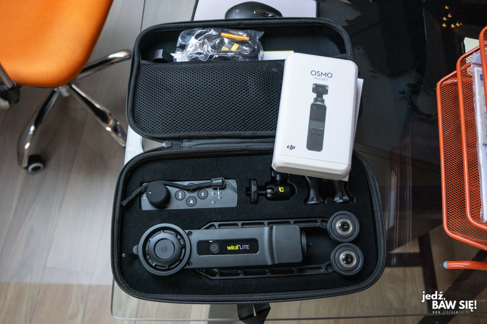 - Gimbal z kamerą DJI Osmo+, który już został zastąpiony przez najnowszą wersję Osmo Pocket, charakteryzującą się przede wszystkim znacznie mniejszymi wymiarami;