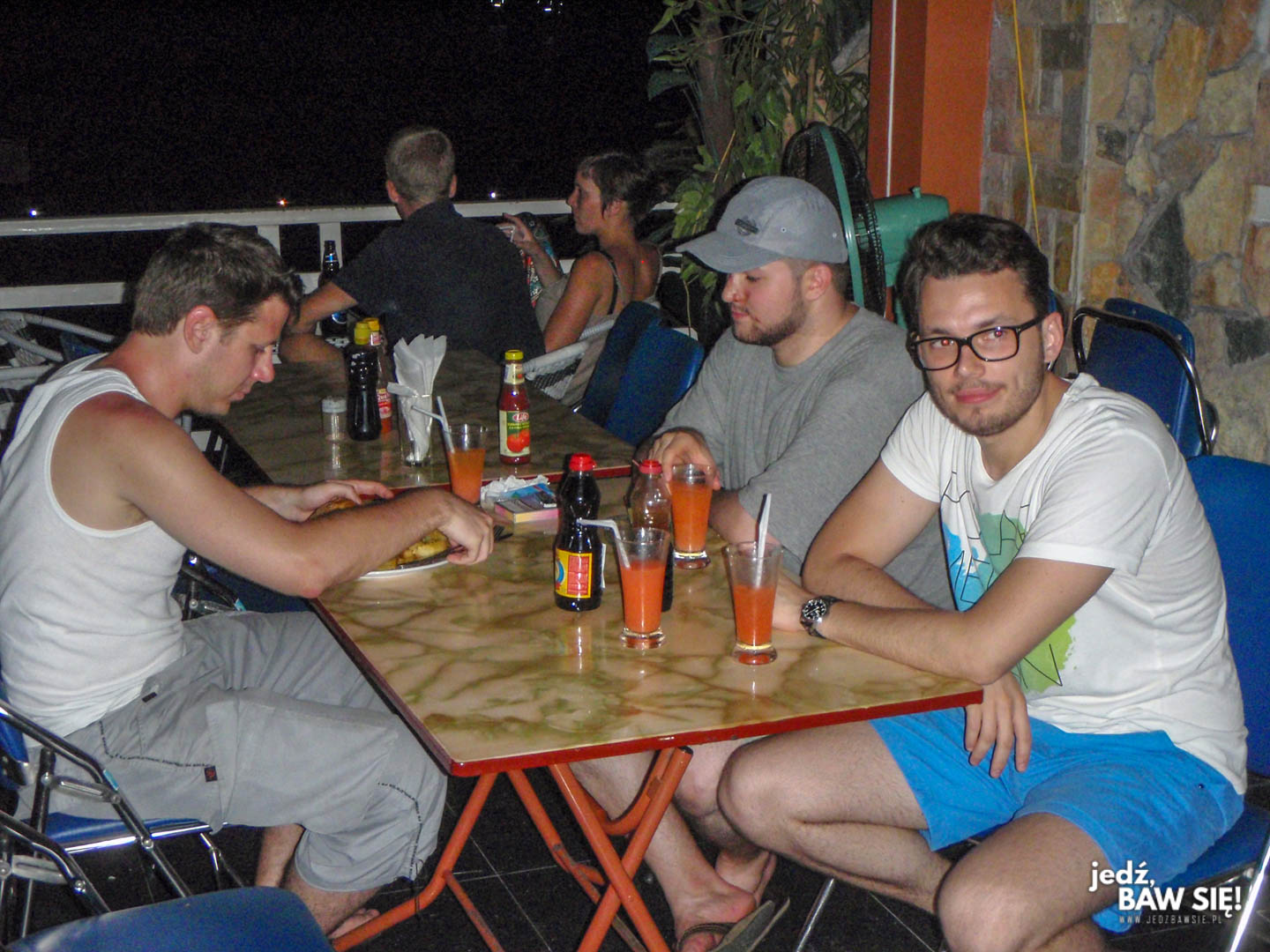 Po dniu pełnym słońca i skalno-kajakowo-jaskiniowo-małpich wrażeń, mieliśmy przed sobą ostatni wieczór w Cat Ba. Był to nasz 6 dzień w Wietnamie, więc mieliśmy jeszcze na tyle dużo energii, by nadal mieć ochotę na chlanie, ale równocześnie na tyle mało, by nie szukać go na siłę. Noc postanowiliśmy więc rozpocząć na spokojnie, od polskiej specjalności: picia w plenerze.