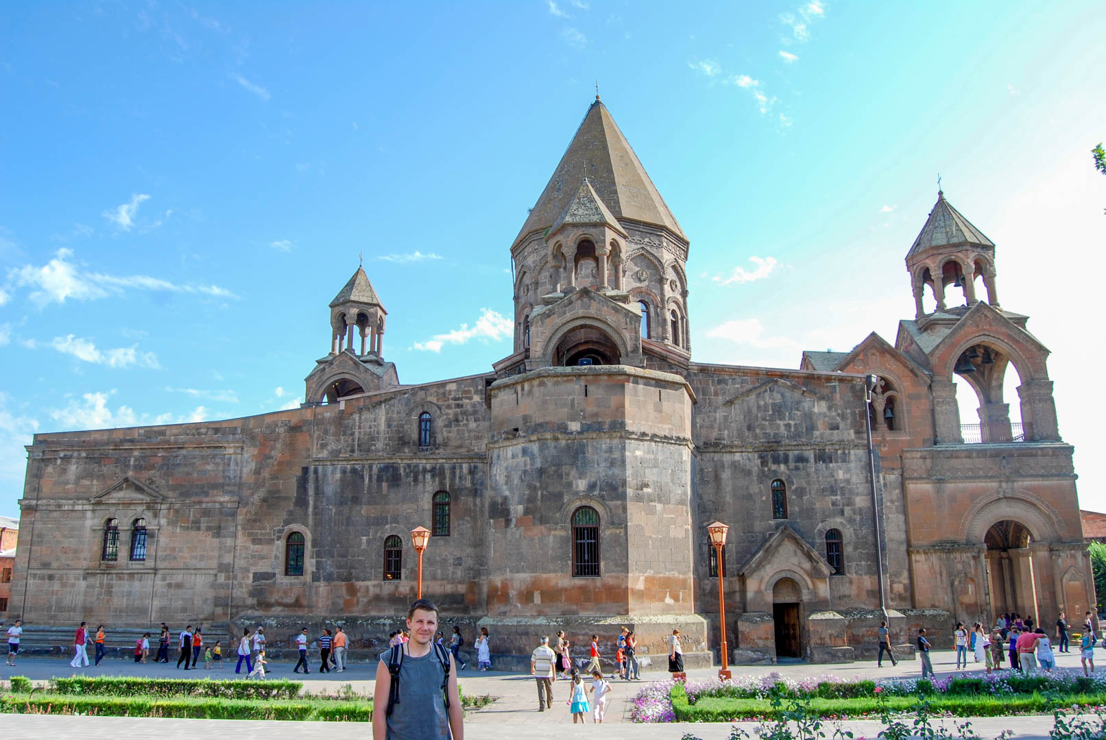 O ile klasztor Khor Virap jest najbardziej znanym ze świętych miejsc Armenii, o tyle Echmiadzin (czyli – w wolnym tłumaczeniu – Miejsce Zrzutu Syna Jedynego Boga) jest zdecydowanie najważniejszym z nich, jeśli chodzi o wagę religijną. Ten „ormiański Watykan”, podobnie jak Khor Virap, związany jest z osobą św. Grzegorza Oświeciciela, który w tym miejscu zobaczył Święty Promień (czy jakoś tak). Czasy były takie, że nikt nie ignorował podejrzanie padających promieni słonecznych, więc Grzesiek, nie namyślając się wiele, machnął w tym punkcie kościół, do dziś zwany Mayr Tachar (czyli: Ormiański kościół-matkę). Katedra, rzecz jasna, stoi do dziś.