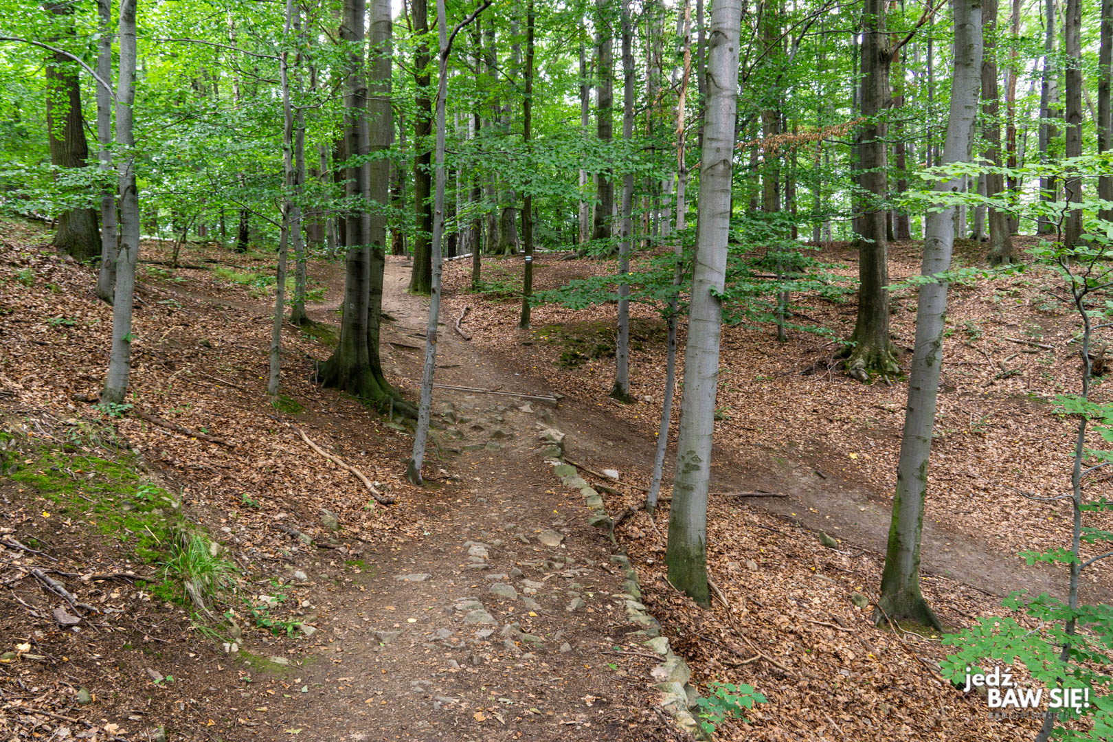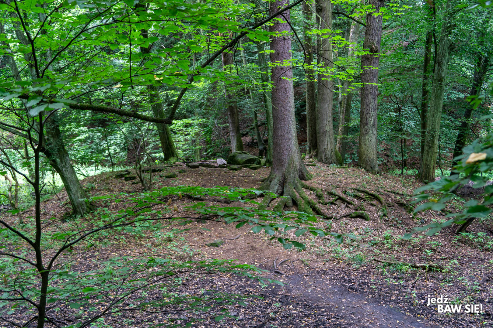 Tak się złożyło, że ścieżka, którą wybraliśmy (zwana, jak potem doczytaliśmy, Ścieżką Hochbergów), jest jednym z wielu szlaków przecinających Książański Park Krajobrazowy. Powierzchnia założonego w 1981 roku parku wynosi ponad 3000 hektarów i bogowie nam świadkami, że godzinę później czuliśmy się tak, jakbyśmy obeszli cały ten obszar.