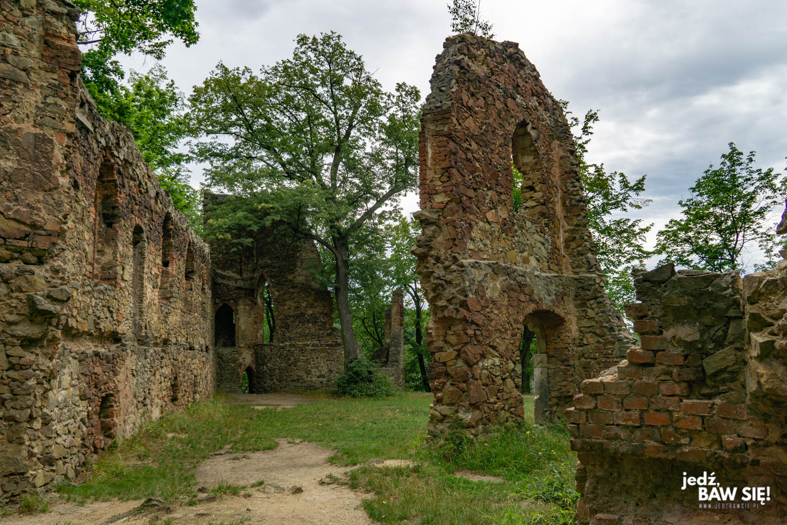Tak czy owak, po kolejnych kilku minutach dotarliśmy wreszcie pod „romantyczne” ruiny. W tym momencie Agatka była już dość mocno zła, bo oboje spływaliśmy potem, co nie zapowiadało komfortowego spędzenia reszty dnia. A jeszcze musieliśmy wrócić. Niemniej, kiedy moja luba odpoczywała w cieniu, ja przeszedłem się po ruinach tego, co zostało ze Starego Książa.