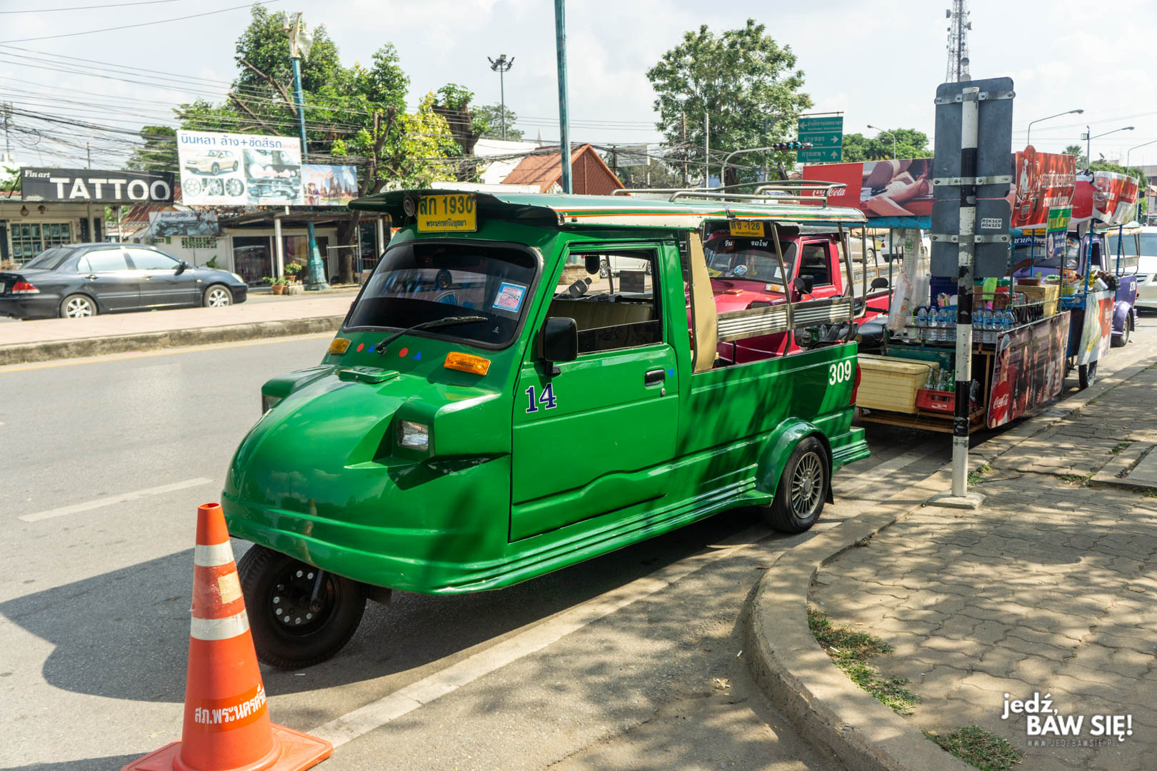 Miasto najlepiej zwiedzać na jakimś kołowym wspomagaczu. Rower będzie idealnym pomysłem, a jeśli zależy nam na szybkości przemieszczania się, to za 80-120 TBH możemy wynająć sobie lokalną wersję tuk-tuka, którego kierowca obwiezie nas po najważniejszych kompleksach, za każdym razem czekając na nasz powrót. Korzystając z tego wariantu warto rozejrzeć się za młodszym kierowcą. Wtedy istnieje szansa, że gość będzie mówił po angielsku, dysponował pewną wiedzą o odwiedzanych czy mijanych obiektach, a do tego da się namówić na wizytę w mniej popularnej świątyni. Większość właścicieli tuk-tuków to jednak leniwa hałastra, która lata po wyznaczonych przez siebie trasach i niezbyt chętnie zgadza się na odstępstwa… no, chyba że na minus. W naszym przypadku największym sukcesem negocjacyjnym było to, że po wycieczce zostaliśmy – bez dodatkowych kosztów – odstawieni na dworzec kolejowy.