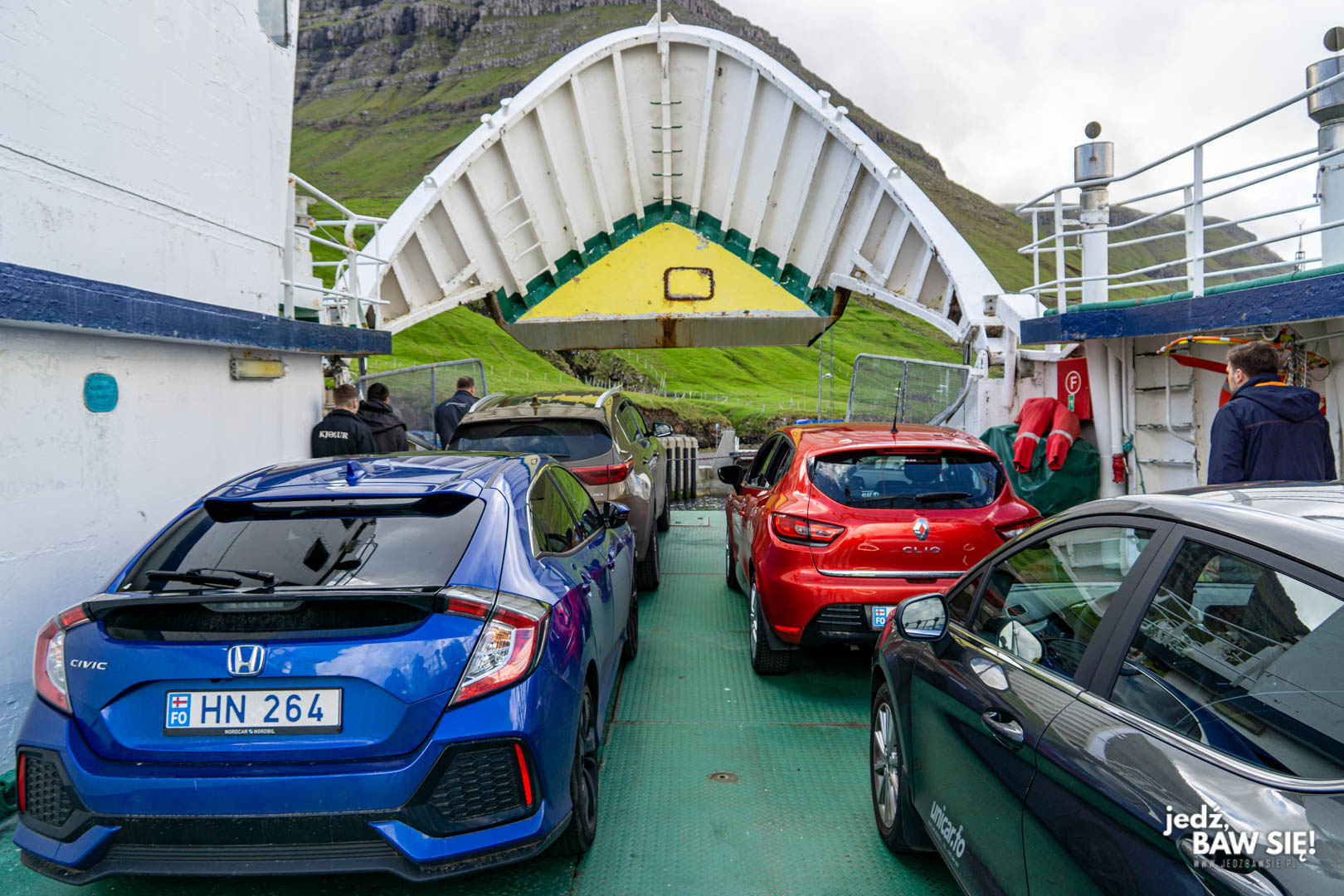 Jeśli na jakąś WIĘKSZĄ wyspę da się dostać promem, to możliwe jest załadowanie na ten prom samochodu. Tak naprawdę pod tym kątem opcje są dość ograniczone, a z roku na rok będą kurczyć się jeszcze bardziej, w miarę powstawania kolejnych tuneli. W tym momencie najpopularniejszymi przeprawami samochodowymi są te na Kalsoy oraz na południowe wyspy Sandoy i Suduroy. Dwóch ostatnich nie udało nam się „zaliczyć”, bo nie było na to czasu, ale wycieczka na Kalsoy to koszt 160 DKK za samochód z kierowcą plus 40 DKK za każdego pasażera. Zgodnie z ogólną zasadą, bilet obejmuje przeprawę w obie strony.