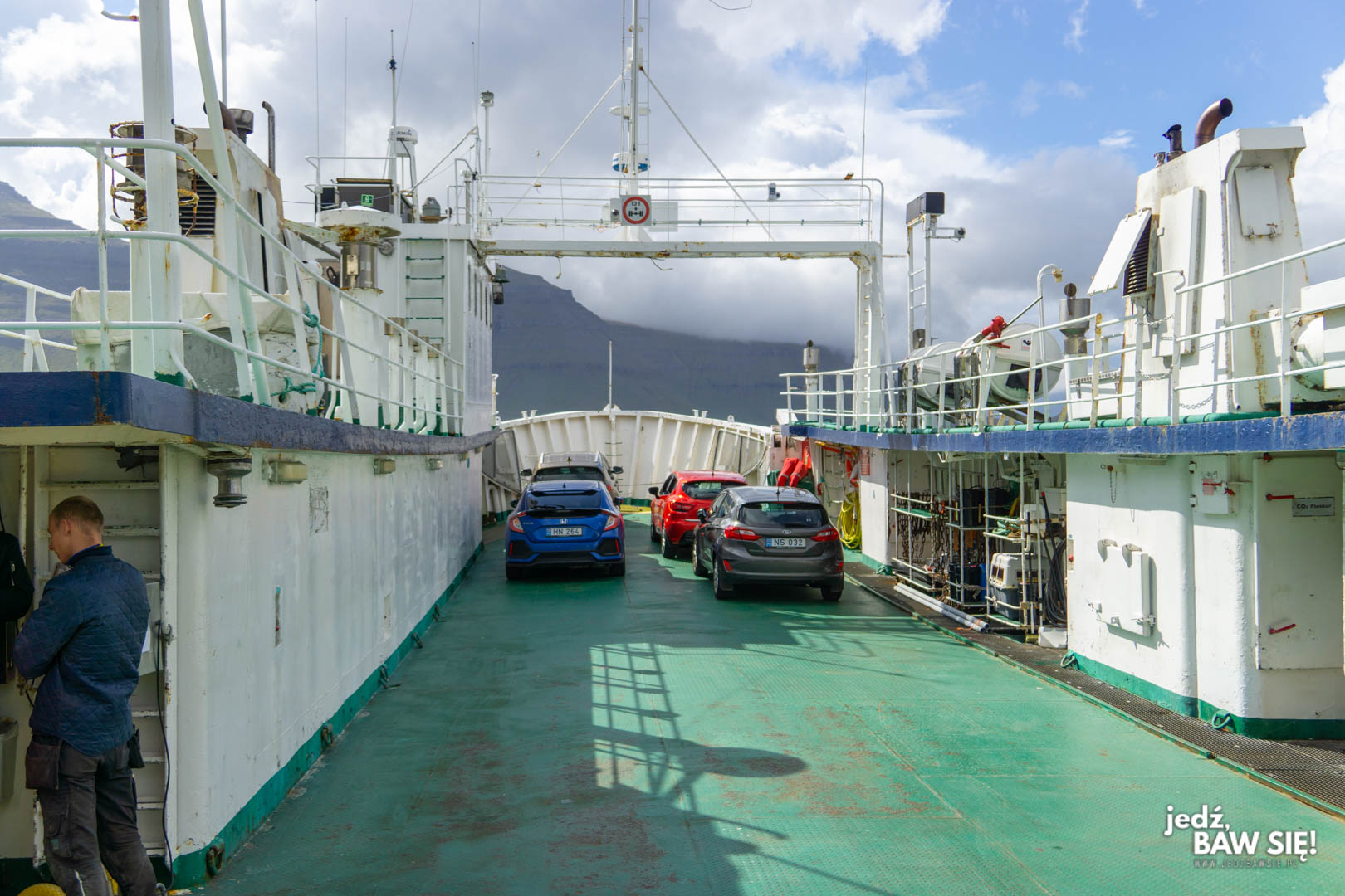 Zajmijmy się najpierw kwestiami praktycznymi. Dostanie się na Kalsoy jest tak naprawdę sprawą trywialną. Wystarczy dojechać do miasta Klaksvik na Bordoy i stamtąd złapać prom samochodowy nr 56 do wioski Sydradalur (na Google Maps przystań znajdziecie pod nazwą Ferjulega). Bardziej problematyczny jest timing, bowiem rozkład rejsów różni się w zależności od sezonu oraz dnia tygodnia. Najczęściej prom pływa w poniedziałki, środy i piątki, ale nawet wtedy jednostka robi sobie długą przerwę pomiędzy 10:00 a 15:00, co może być problematyczne dla tych, którzy nocują z dala od Bordoy i lubią sobie pospać. Statek nie jest również zbyt duży, mieści około 10-12 pojazdów, więc jeśli pojawicie się na przystani na ostatnią chwilę, to może zabraknąć dla Was miejsca. Niemniej, w internecie dostępny jest dokładny rozkład rejsów na Kalsoy i planując Waszą wycieczkę na tę wyspę musicie po prostu mieć go pod ręką. My niestety szukaliśmy go na bieżąco, w wyniku czego nasza wyprawa nie poszła dokładnie tak, jak moglibyśmy sobie to wymarzyć. Na przystani pojawiliśmy się trochę za późno, a kiepskie warunki pogodowe sprawiły, że nie starczyło nam czasu na wszystko, co chcieliśmy zobaczyć. Pogoda jest tu również o tyle ważna, że w przypadku bardzo niespokojnego morza dany kurs może po prostu się nie odbyć, a taka sytuacja może utrzymywać się przez kilka godzin, a nawet dni.
