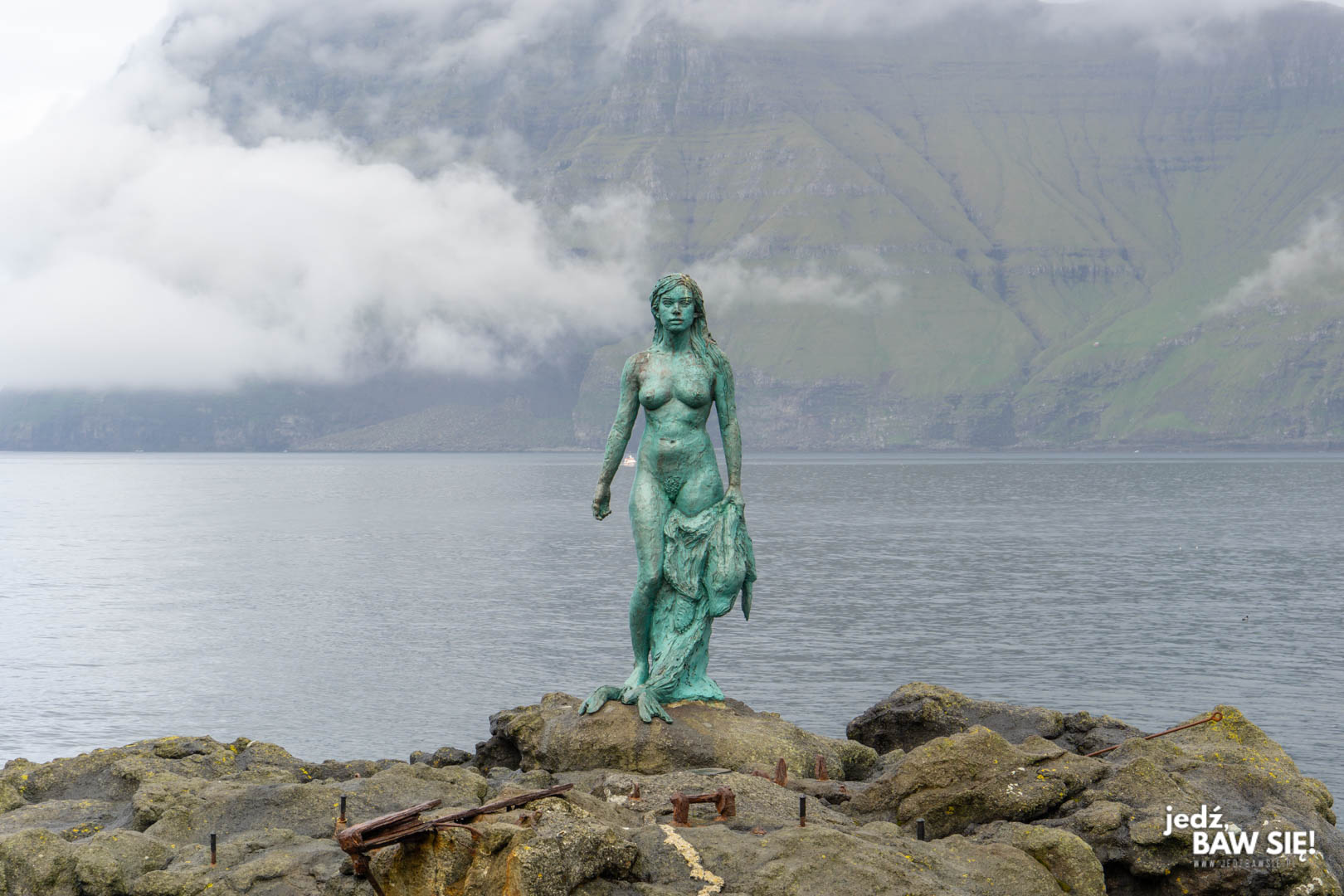 Żeby nie było, rzeźba foko-syrenki jest ulokowana w wyjątkowo widowiskowym miejscu, więc jak skończycie już sesję do Playboya, to warto skierować obiektyw aparatu także w kilku innych kierunkach. Uważajcie na dojście do posągu, bo bywa wyjątkowo śliskie. W okolicy jest też – o ile pamiętam – sklep z pamiątkami, a także publiczna toaleta. W miejscowości Mikladalur znajdziecie również wspomniany wcześniej, jedyny na wyspie kemping.