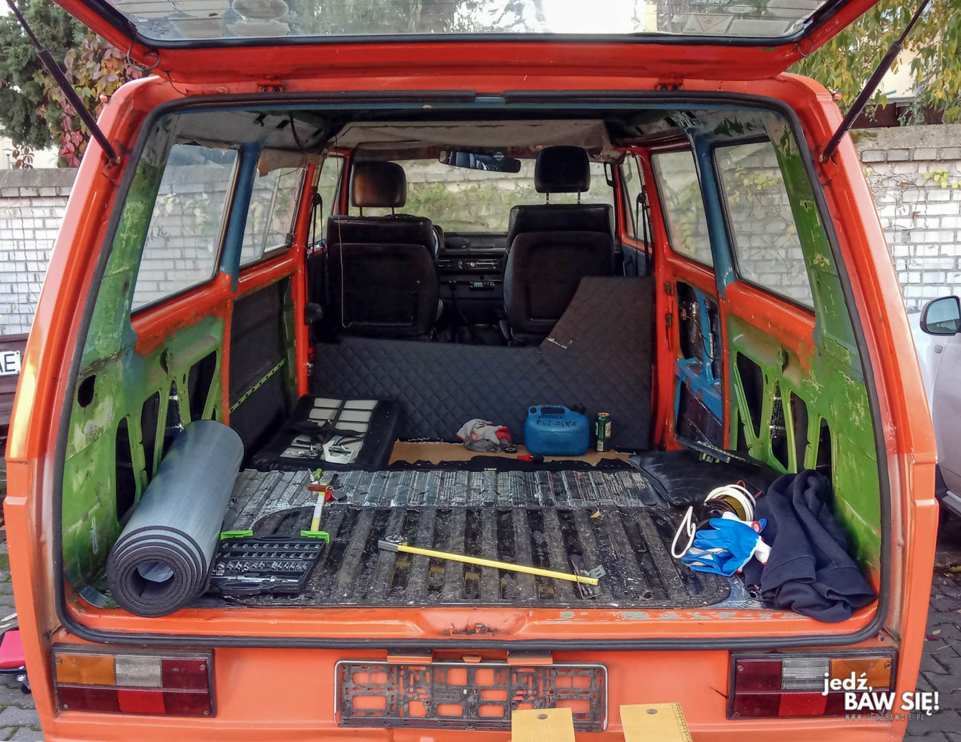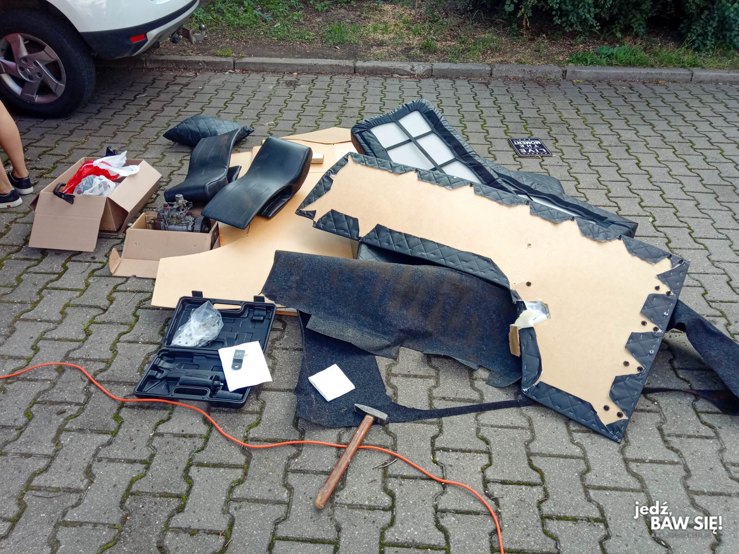 Robotę nad samochodem zaczęliśmy już w sierpniu 2019 roku, a na początku zrobiliśmy rzecz najprostszą. Konkretnie, wyjebaliśmy z niego wszystkie śmieci pozostawione przez poprzedniego właściciela. Na bruk poszły „meble” (cudzysłów zamierzony, bo z meblami miały wspólnego tylko tyle, że były wykonane z płyty wiórowej…), byle jak wycięte boczki-samoróbki i tym podobne pierdolety.