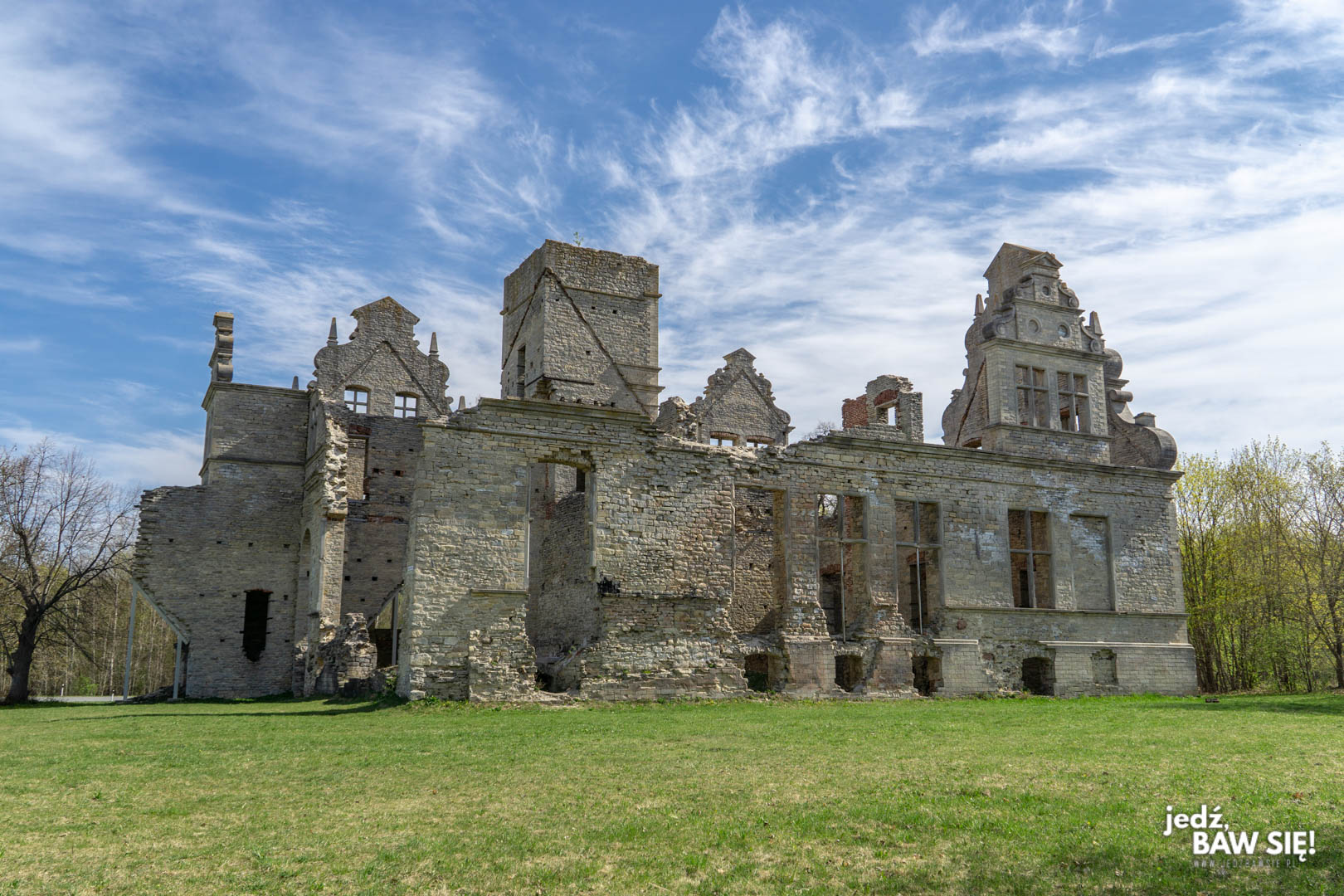 Na teren posiadłości wejdziecie za darmo i możecie kręcić się po nim do woli i bezpiecznie. Budynek został zakonserwowany w stanie trwałej ruiny, a grożące zawaleniem fragmenty zostały wzmocnione. Warto, bo swego czasu był to najwspanialszy przykład neo-barkowej budowli w regionie nadbałtyckim.