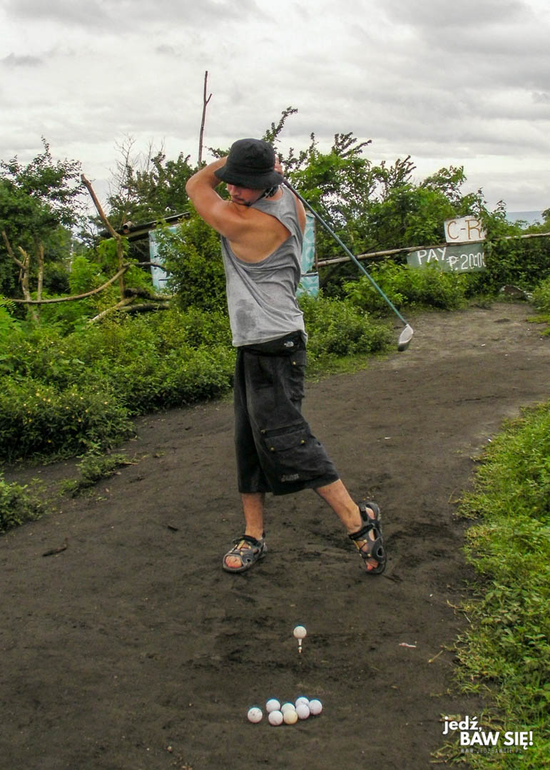 No i na sam koniec: szczyt. Pominę tutaj fakt, że podczas naszej wizyty na krawędzi krateru panowała potworna duchota – tego należy się spodziewać, kiedy leci się na Filipiny w środku sezonu deszczowego. Znacznie bardziej byłem przerażony tym, że lokalni, przedsiębiorczy młodzieńcy urządzili sobie na szczycie Taal punkt, w którym wynajmowali kije golfowe i piłeczki, by można było sobie nimi siepnąć w dal, a najlepiej w sam środek najmniejszego z jezior. Pomijam tu kwestię bezsensowności takiej czynności, bo generalnie golf jest sportem, który nigdy do mnie nie przemawiał. Nie wierzę jednak w to, że któryś z chłopaków wieczorem schodzi z krateru, by chociaż część tych piłek pozbierać. Zaśmiecanie twardym, długo rozkładającym się plastikiem własnego dobra narodowego to dobry przykład na to, jak na Filipinach kasa trzęsie branżą turystyczną. Być może teraz sytuacja nieco się zmieniła, aczkolwiek jestem w tym względzie sceptyczny…