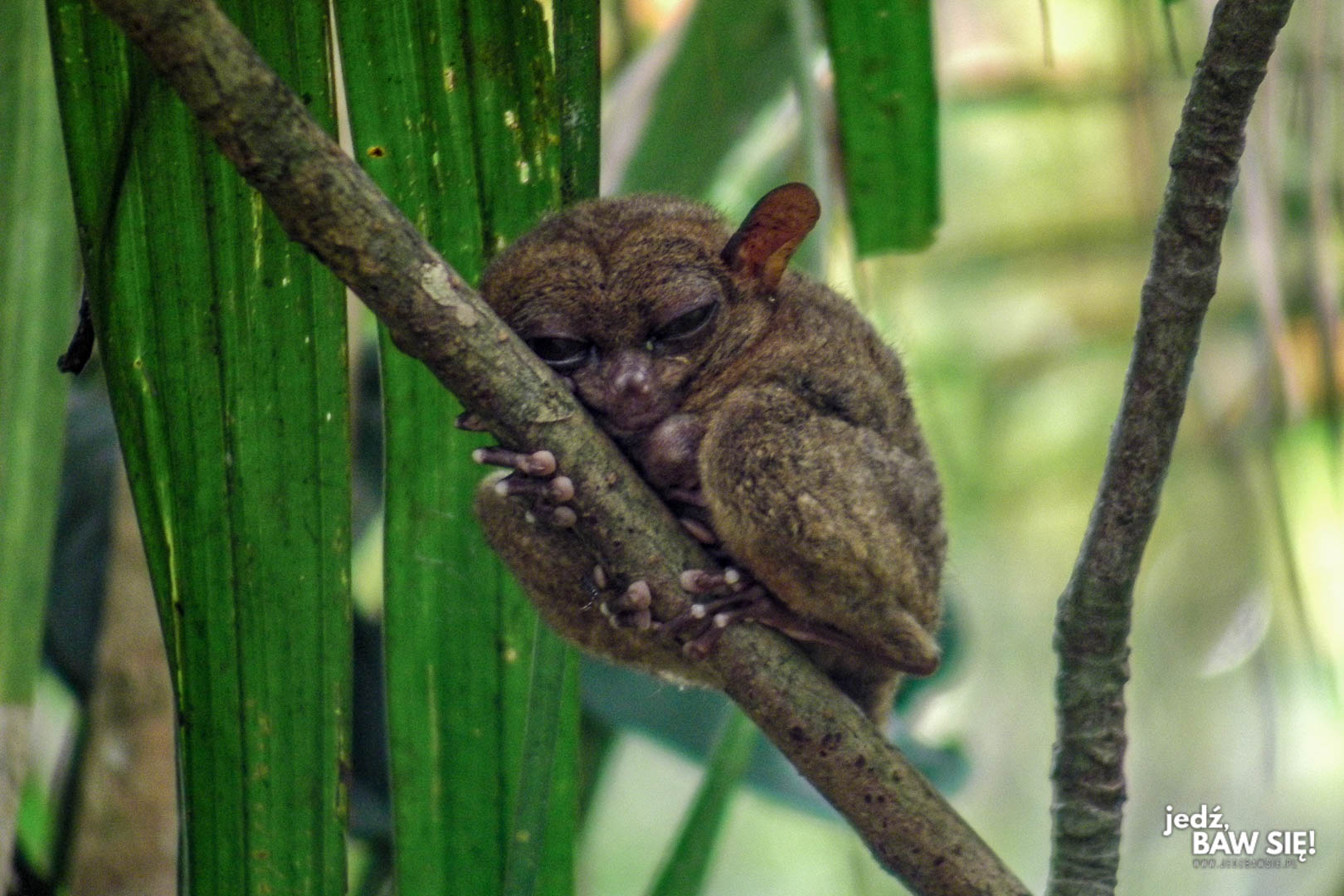 … niestety, podobnych buców jest całkiem sporo w okolicy Bilar i na całej wyspie Bohol, bowiem tarsjusze mają tam swój rezerwat nie bez powodu. Jeszcze kilkanaście lat temu kłusownicy mieli w zwyczaju łapać te stworzenia i stręczyć je turystom do zdjęć, co przyczyniało się do ich szybkiej śmierci (wyraki mają bardzo cienkie kości). Do dziś można natknąć się na typków spod ciemnej gwiazdy, usiłujących na migi przekazać, że mają Wam do zaoferowania portret z puchatą słodyczą za cenę paru amerykańskich zielonych (lub ekwiwalent). Nie muszę chyba pisać, że podobne aktywności należą do karygodnych i – jeśli macie możliwość – warto zgłaszać je policji lub obsłudze rezerwatu.