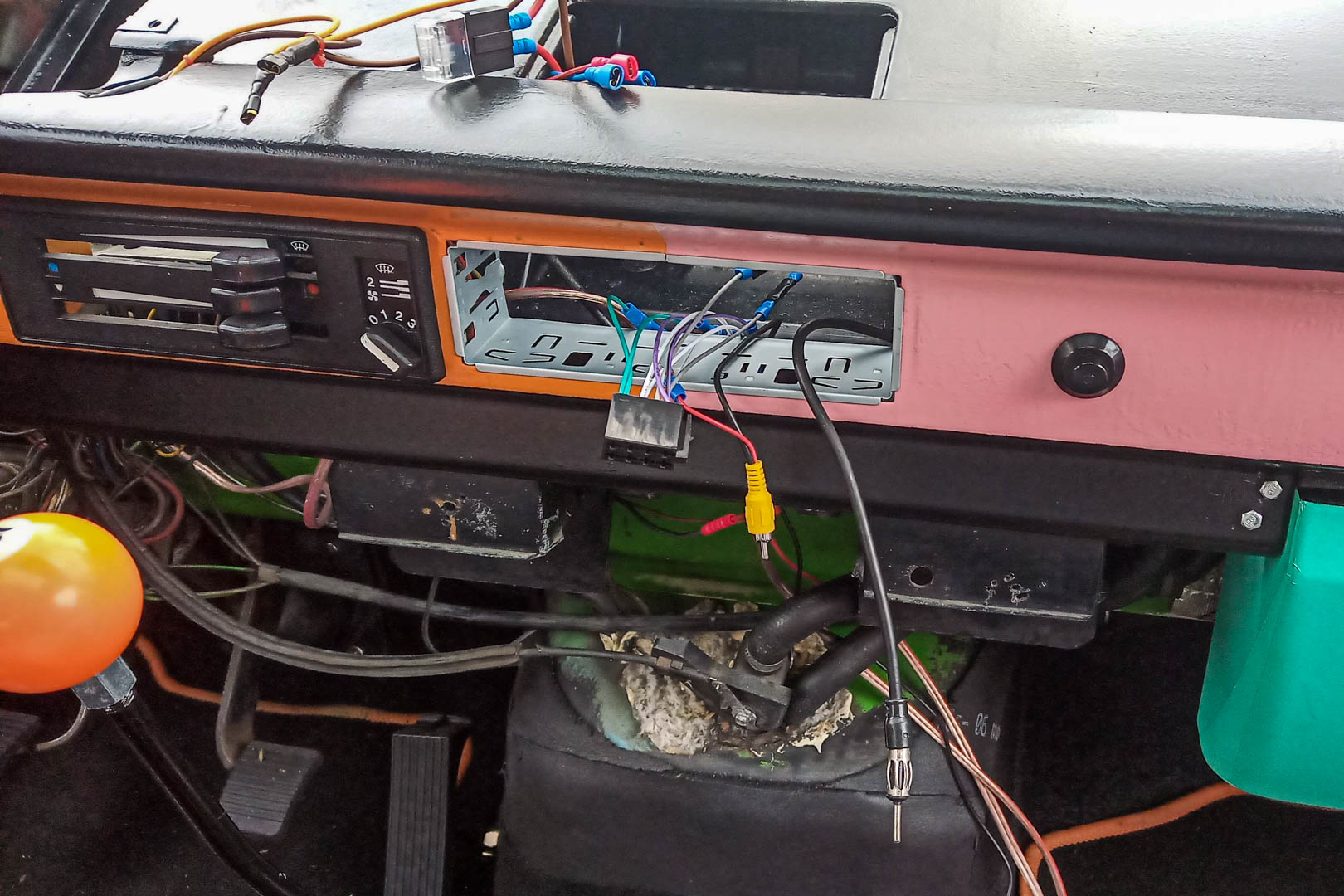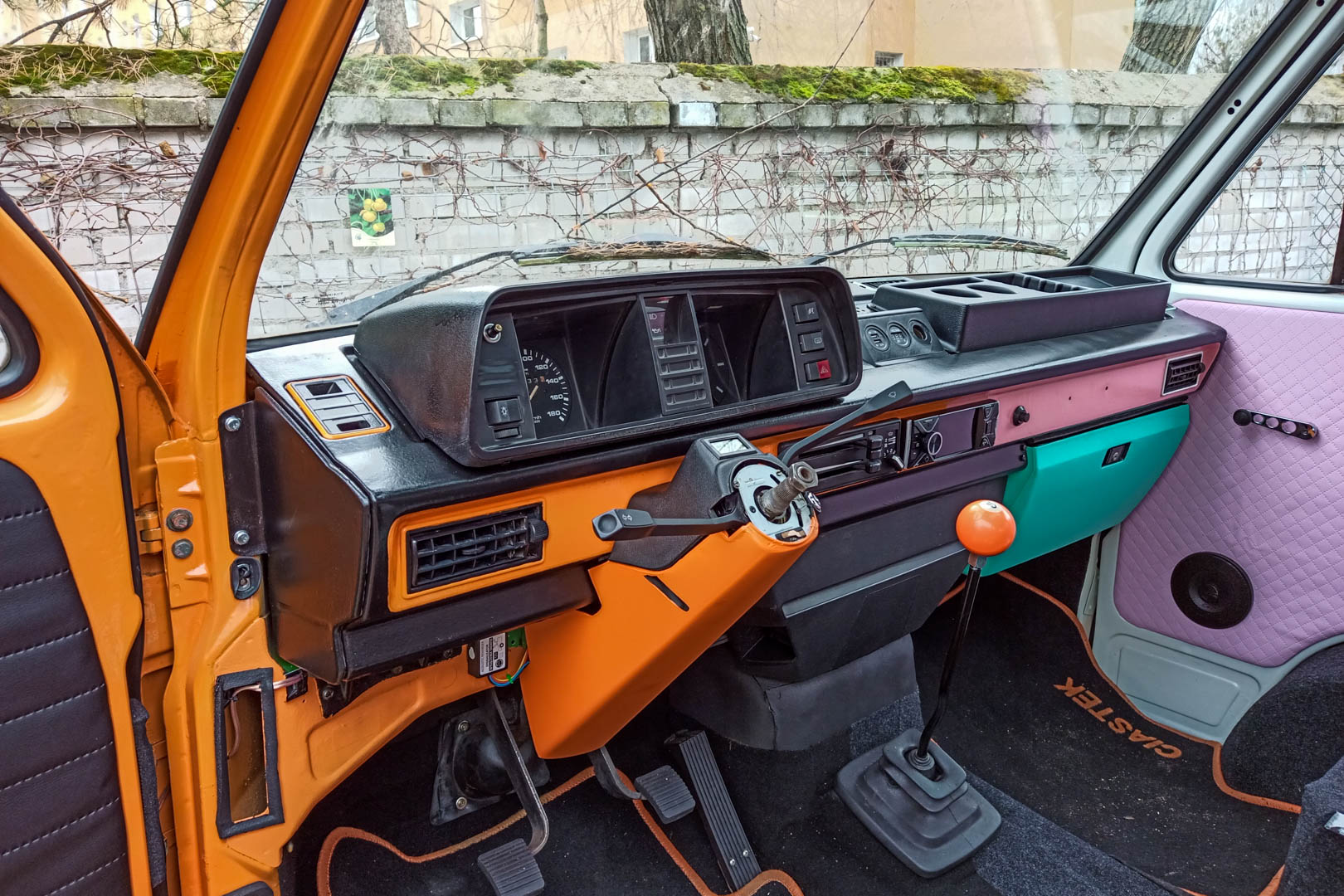 Zdjęta deska rozdzielcza to jednak również utrudniony dobór radia. Na sieci próbowałem znaleźć maksymalną głębokość takiego urządzenia, które można wpasować do Volkswagena T3 i nie znalazłem konkretnej informacji na ten temat. Jeśli jej szukacie, to proszę bardzo: