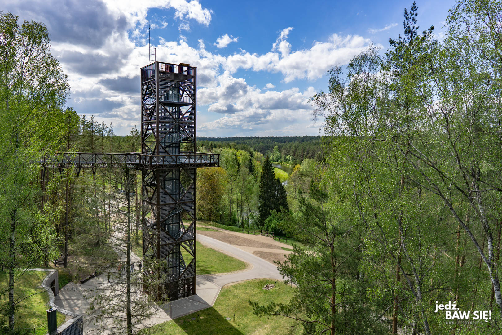 Zacznijmy od wycieczki, którą można opisać jako najbardziej problematyczną. Jest tak dlatego, że wymaga ona skoczenia w głąb Litwy i to na dość sporą odległość od Wilna. Jedyna (jak na razie) w państwach nadbałtyckich ścieżka w koronach drzew położona jest circa 100 km na północ od litewskiej stolicy, w pobliżu miejscowości Onikszty. Została zbudowana w 2015 roku, więc można śmiało powiedzieć, że to obiekt nowoczesny, na którym czas nie odcisnął jeszcze swojego piętna, a do tego wyposażony we wszelkie potrzebne udogodnienia (w tym windę dla osób niepełnosprawnych).