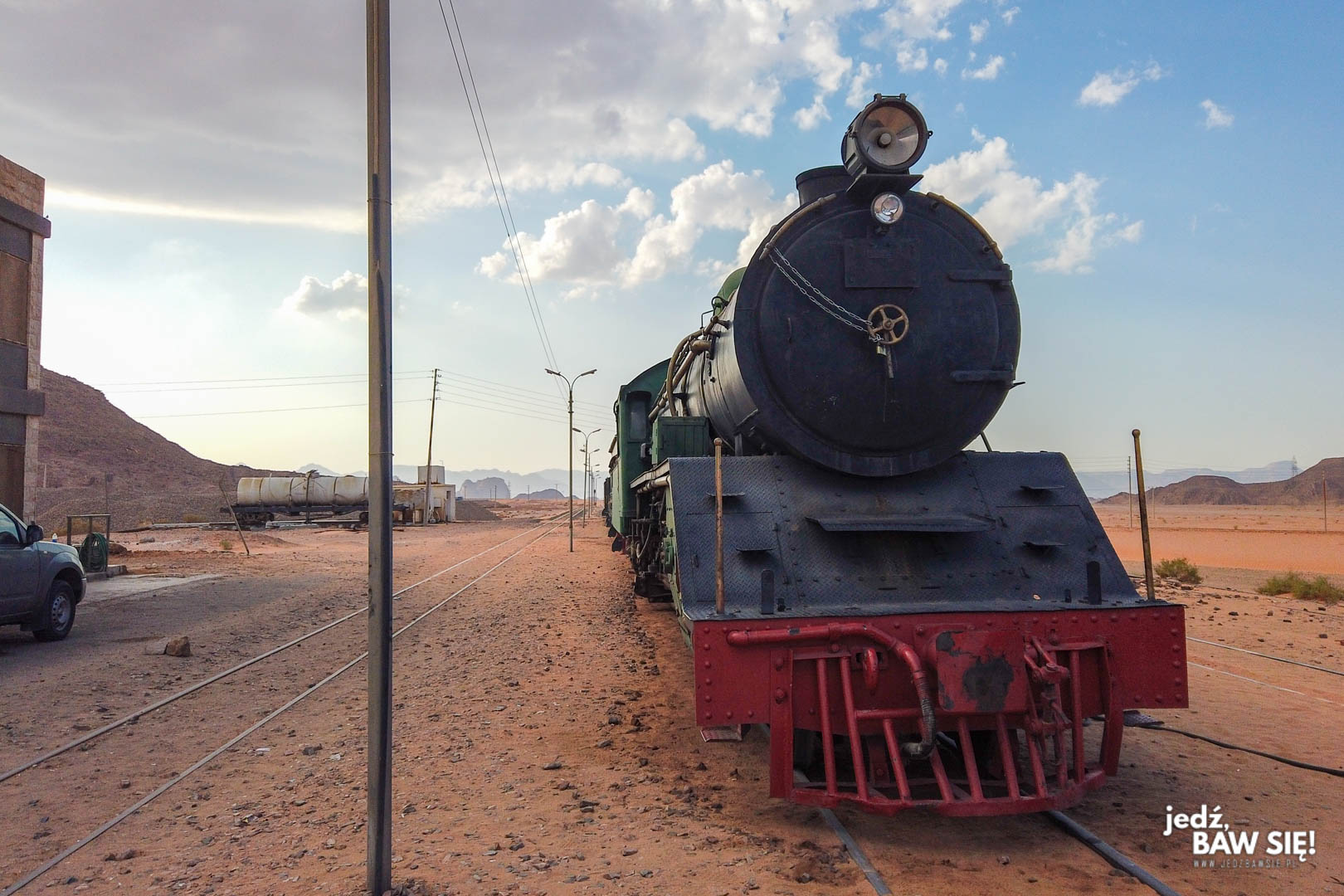 Jadąc do wioski Wadi Rum upewnijcie się, że zrobicie sobie krótki przystanek na stacji kolei Hidżaskiej – na 100% dostrzeżecie ją z drogi. Linia ta łączyła niegdyś Medynę z Damaszkiem, ale obecnie funkcjonują tylko dwa jej odcinki – jeden łączący Amman z Damaszkiem, a drugi: kopalnie pod Ma’an z Akabą. Odcinek ciągnący się niegdyś przez Wadi Rum nie funkcjonuje, ale na stacji można obejrzeć sobie pełen skład z okolic 1917 roku, a jeśli bardzo chcecie, to nawet przejechać się nim kawałek (chociaż silnik parowy został zastąpiony silnikiem diesla – a jakże). Co ważne, do pociągu można wchodzić, więc taki przystanek naprawdę warto zaliczyć, choćby po to by rozprostować kości.