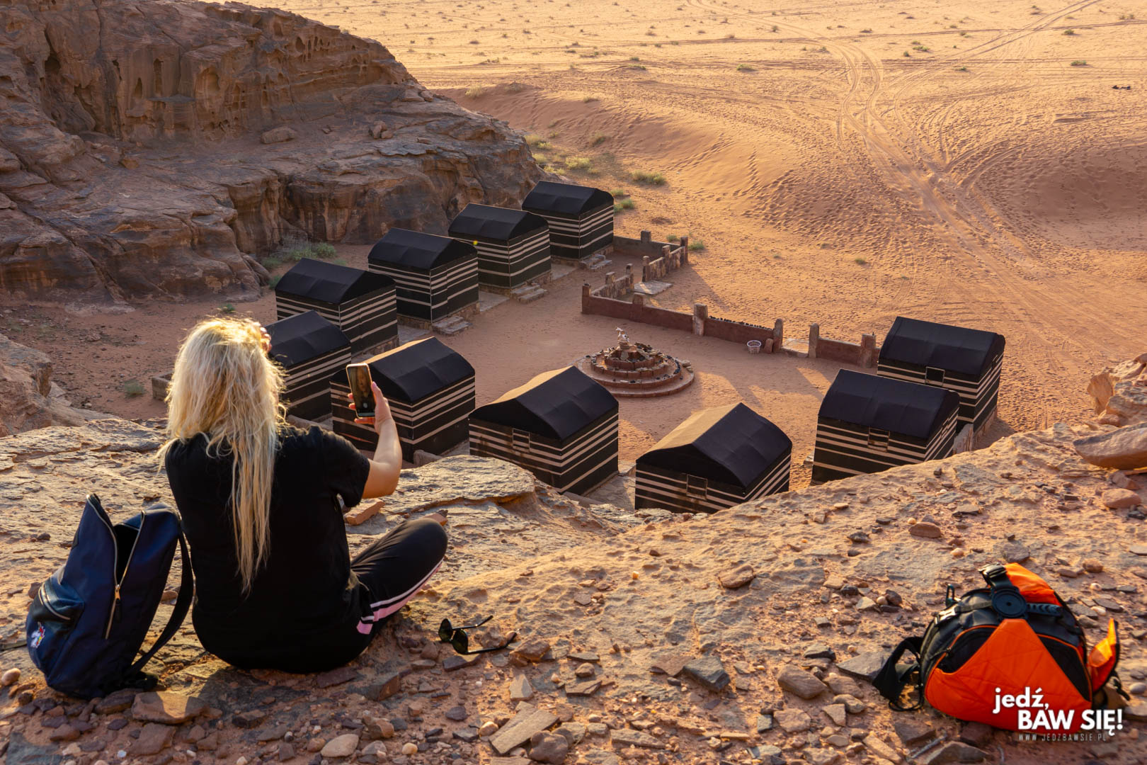 W związku z pewnymi brakami w infrastrukturze, na nocleg na Wadi Rum warto się przygotować. My wzięliśmy do mniejszych plecaków komplet ciuchów na dwa dni, sprzęt foto-video, przybory toaletowe oraz całkiem spory zapas żarcia i picia. Na miejscu co prawda zrobicie sobie herbatę czy zjecie dodatkowo płatny lunch w trakcie wycieczki (zazwyczaj około 5 JOD), ale na przekąski czy zimne napoje nie liczcie – no chyba, że płacicie po 200 zeta za noc. Ważne info – w wiosce Wadi Rum nie kupicie alkoholu, więc wielbiciele trunków wyskokowych wybierający się na pustynię również powinni zadbać o zaopatrzenie na zaś (np. w Akabie, która jest do tego idealna). Przy tamtejszych temperaturach wystarczą dwie butelki czegoś mocniejszego, żebyście co noc widzieli dwa komplety gwiazd, więc wiecie – pijcie odpowiedzialnie i takie tam.