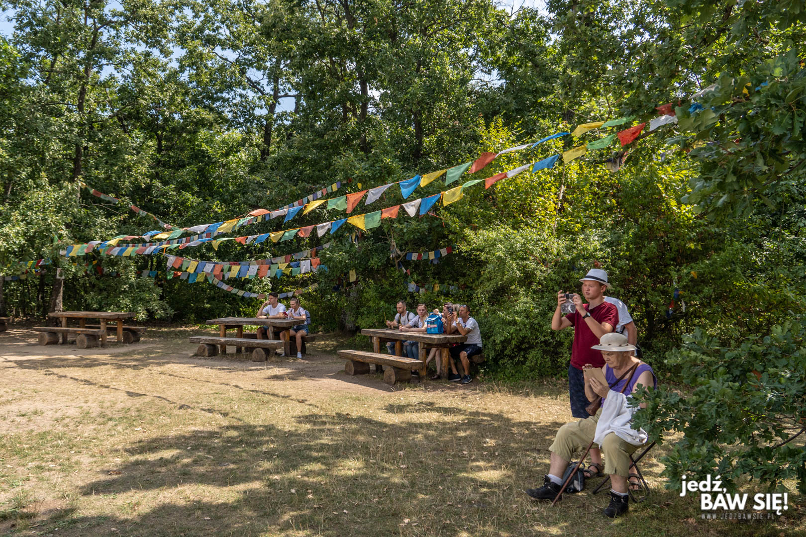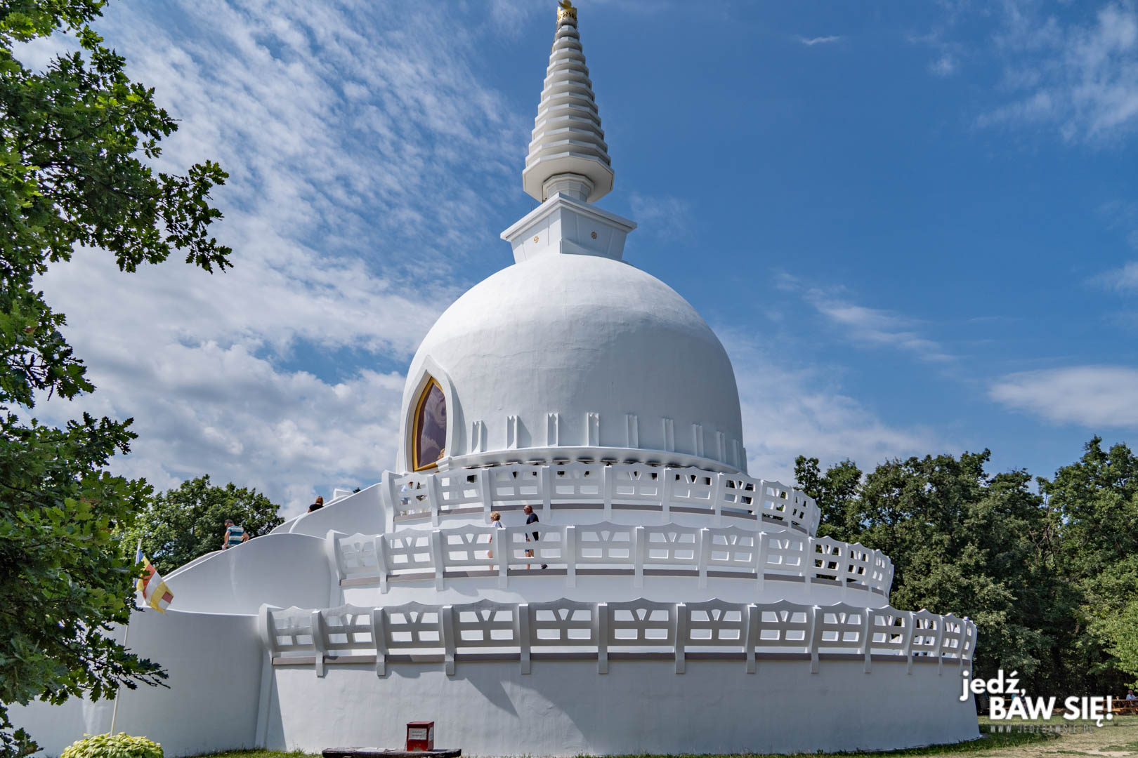 Sama stupa to wypisz-wymaluj prawdziwy kawałek dalekowschodniej Azji, skryty w cieniu węgierskiego lasu. 30-metrowa budowla, będąca największą tego typu konstrukcją w Europie, stoi sobie spokojnie na środku niewielkiej polany, otoczonej chorągiewkami modlitewnymi, jednoznacznie kojarzącymi się z Tybetem czy Nepalem. Całość sprawia wrażenie, jakbyśmy na moment faktycznie przenieśli się do któregoś z tych krajów, chociaż w naszym przypadku nie zgadzała się trochę temperatura: słupek rtęci dobijał do 30 stopni.