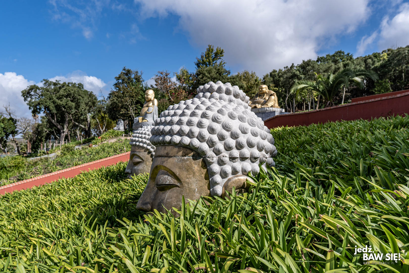Portugalski ogród buddyjski to istne pomieszanie z poplątaniem, co w sumie udatnie symuluje kawałek kultury azjatyckiej. Na jednej, ogromnej przestrzeni znajdziemy setki posągów Buddy w różnych odsłonach, wizerunki azjatyckich bożków, bohaterów i demonów, kilka pagód i altanek o różnych kształtach i rozmiarach, a nawet pomalowaną (głównie) na granatowo armię terakotową o liczebności 600 chłopa (z której część jest zakopana – zgodnie z oryginałem).