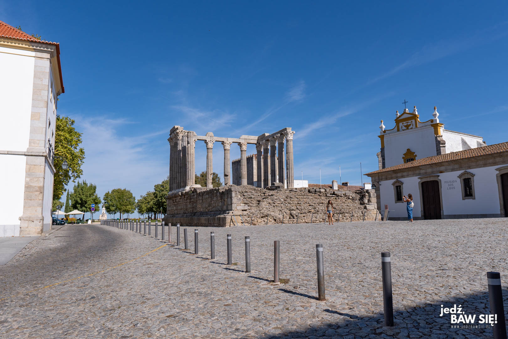 Evora to dobry symbol regionu. Miasteczko jest nieduże, a jego głównymi atrakcjami są XIV-wieczne mury i akwedukty, w interesujący sposób inkorporowane w miejscowość; oraz dość śladowe pozostałości po obecności Rzymian. Tu na prowadzenie wysuwa się centralnie ulokowana Templo Romano – niewielka świątynia z II-III w. n.e., będąca jednocześnie jedną z najlepiej zachowanych tego typu budowli w Portugalii. W czasach średniowiecznych konstrukcja została zabudowana i przekształcona w niewielką twierdzę, dzięki czemu dotrwała do naszych czasów w bardzo dobrym stanie.