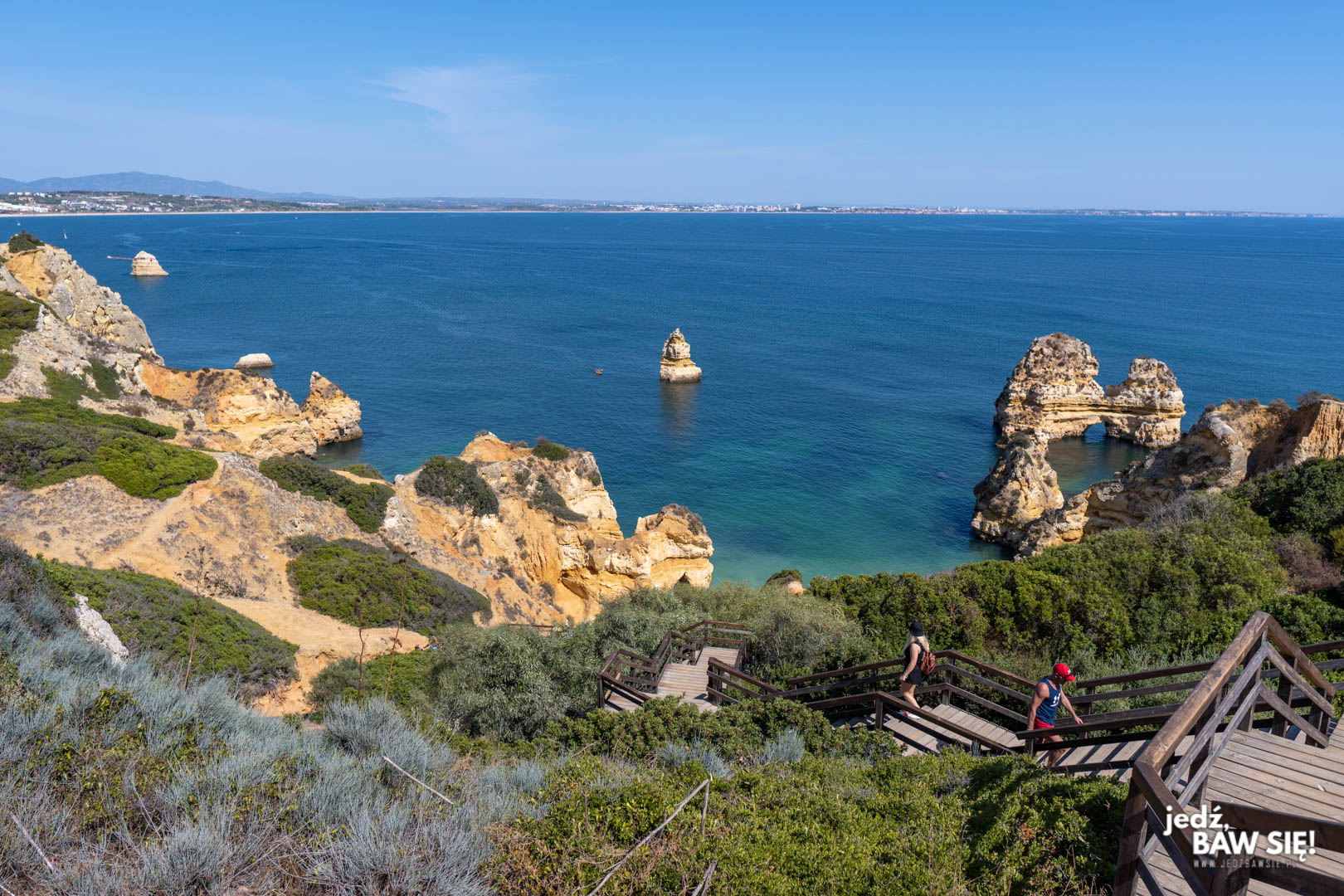 Inną zaletą naszego noclegu na miejscu (który zresztą bardzo polecamy – przybytek nosił nazwę Dona Ana Garden) była bliskość Ponta de Piedade. Ten charakterystyczny przylądek to najważniejsza atrakcja Lagos, bowiem to właśnie na nim znajduje się gros tutejszych, malowniczo położonych plaż. Trzy najważniejsze to Praia do Camilo, Praia da Balanca oraz Praia do Barranco do Martinho. Charakterystyczną cechą każdej z nich jest to, że na samą plażę musimy zejść po długaśnych, drewnianych schodach, z których możemy podziwiać widoki na odpowiednie zatoki.
