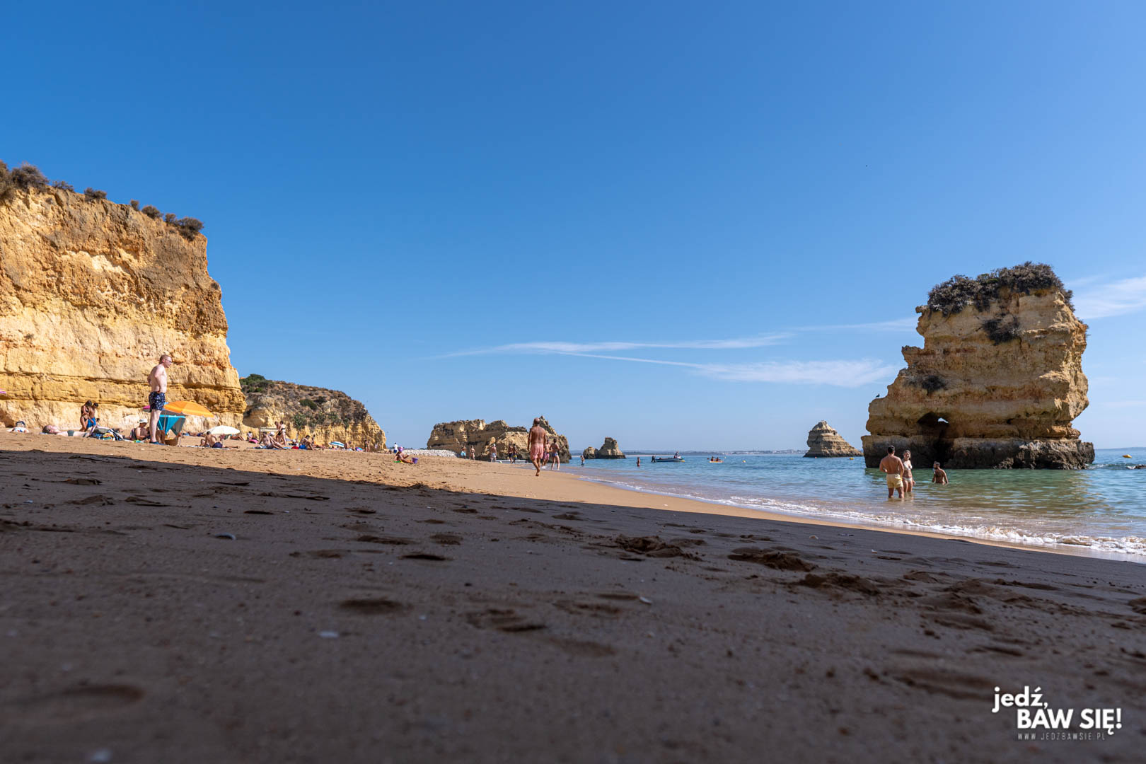 Bardziej „standardowe” plaże Lagos ciągną się na „lewo” i „prawo” od przylądka Piedade i też nie należą do brzydkich, ale to po prostu łachy piasku wpadającego do morza. Ich plusem jest jednak rozmiar, który gwarantuje, że przynajmniej na nie nie trzeba wbijać z parawanem o 6:00 nad ranem.