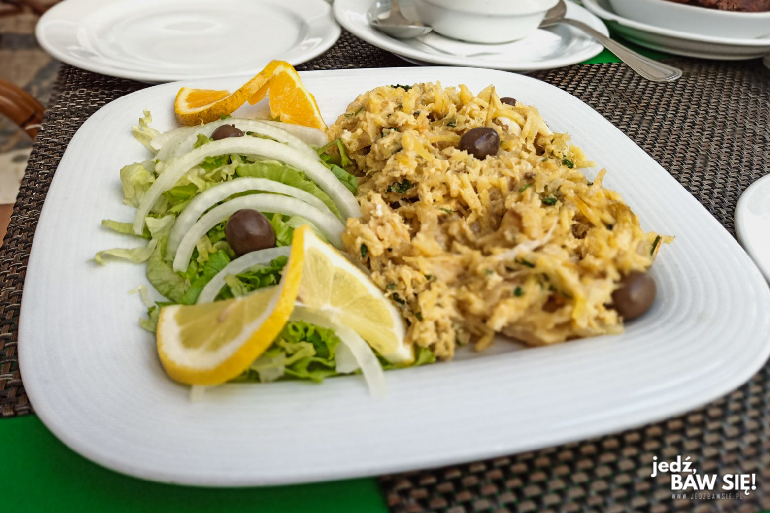 Dorsz to w Portugalii uwielbiana ryba, którą spożywa się tu na wiele sposobów. Najpopularniejszym z nich jest potrawa w formie zapiekanki, podawanej z ziemniakami lub lokalnymi czipsami ziemniaczanymi. W środku znajdziemy nie tylko rybę, ale także cebulę i jajko (uwaga: może tam być także kolendra!). Potrawa jest prosta i pożywna, dlatego jeśli ktoś szybko się najada, to solidna porcja powinna mu starczyć na kawałek dnia. Dorsza w Portugalii zjemy także w formie pasztecików (pasteis de bacalhau) i na 364 inne sposoby, bowiem Portugalczycy chwalą się, że mają po jednym przepisie z dorsza na każdy dzień roku. Koszt: 4-6 euro.