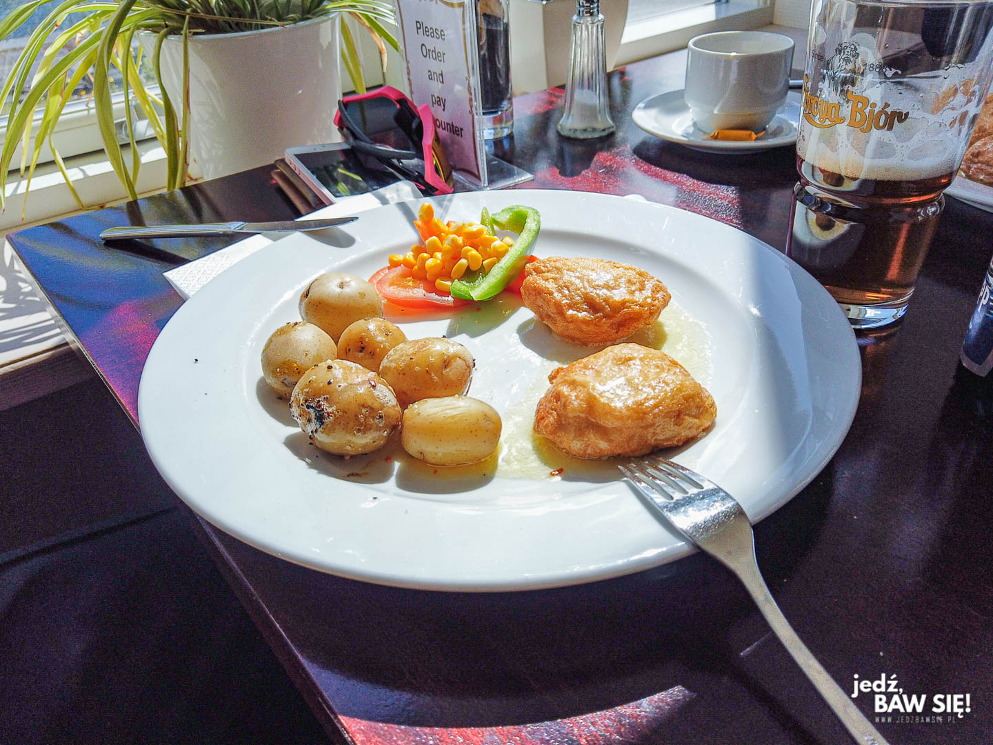 Lubicie testować lokalną kuchnię? Jeśli tak, to Wyspy Owcze mogą Was nieco rozczarować. Tutejsza BUDŻETOWA oferta gastronomiczna ogranicza się głównie do własnoręcznie przygotowywanych śniadań, przekąsek na stacjach benzynowych oraz – w większych miejscowościach – nielicznych knajp, w których królują głównie burgery z baraniny (całkiem niezłe), pizza (również znośna) oraz nieśmiertelna fish & chips (która była naszym najczęstszym wyborem). W punkcie usług turystycznych w Vestmannie znajdziecie także w miarę tani lokal, w którym spróbujecie tradycyjnych klopsików z ryby, ale lojalnie ostrzegam, że raczej nie urwą Wam one dup. Nie oszukujmy się – Faroje nie są archipelagiem, które sprzyjają wykwintnej kuchni, także tutejsze, proste posiłki mają tendencję do bycia po prostu solidnymi i tłustymi…